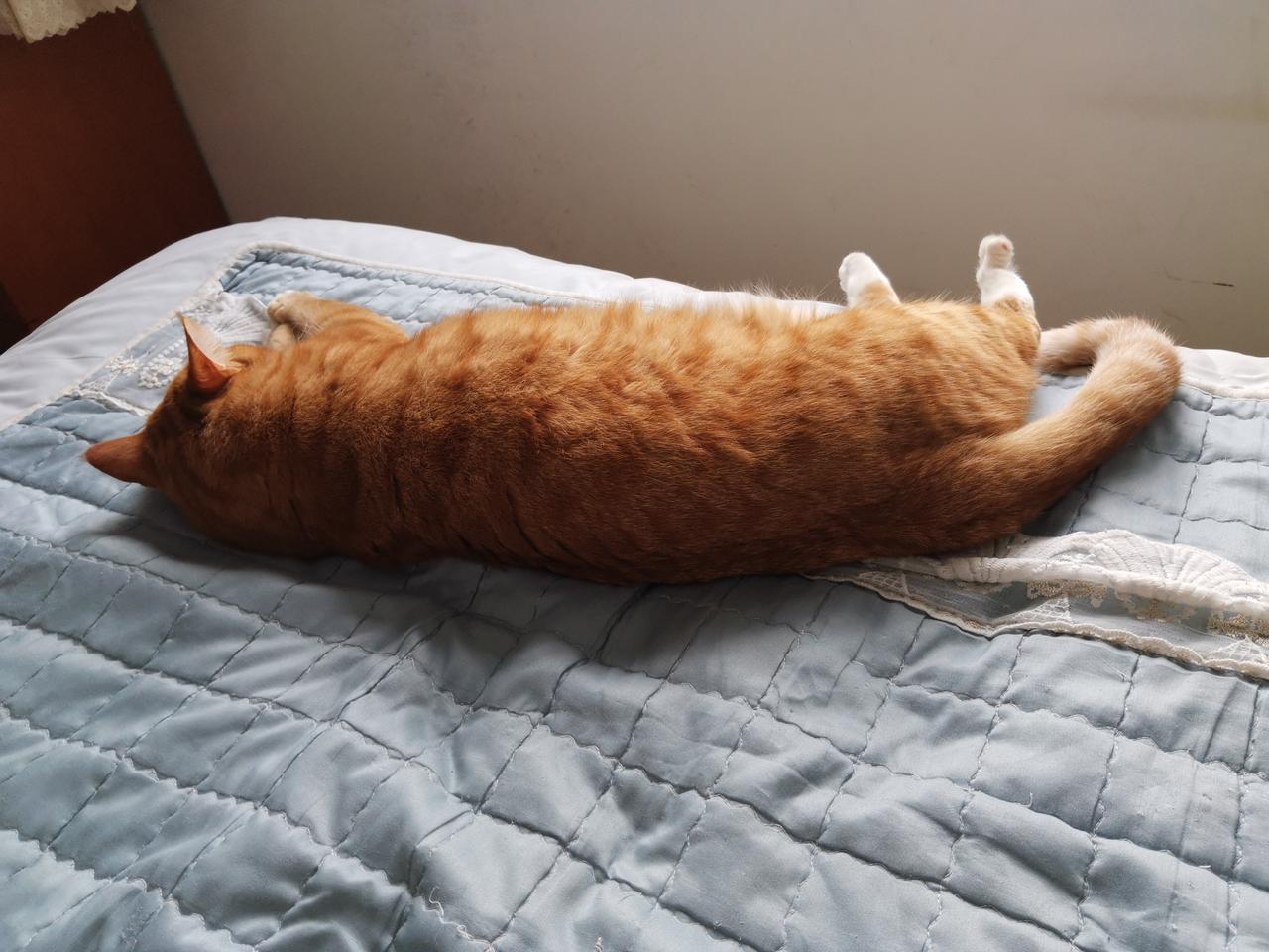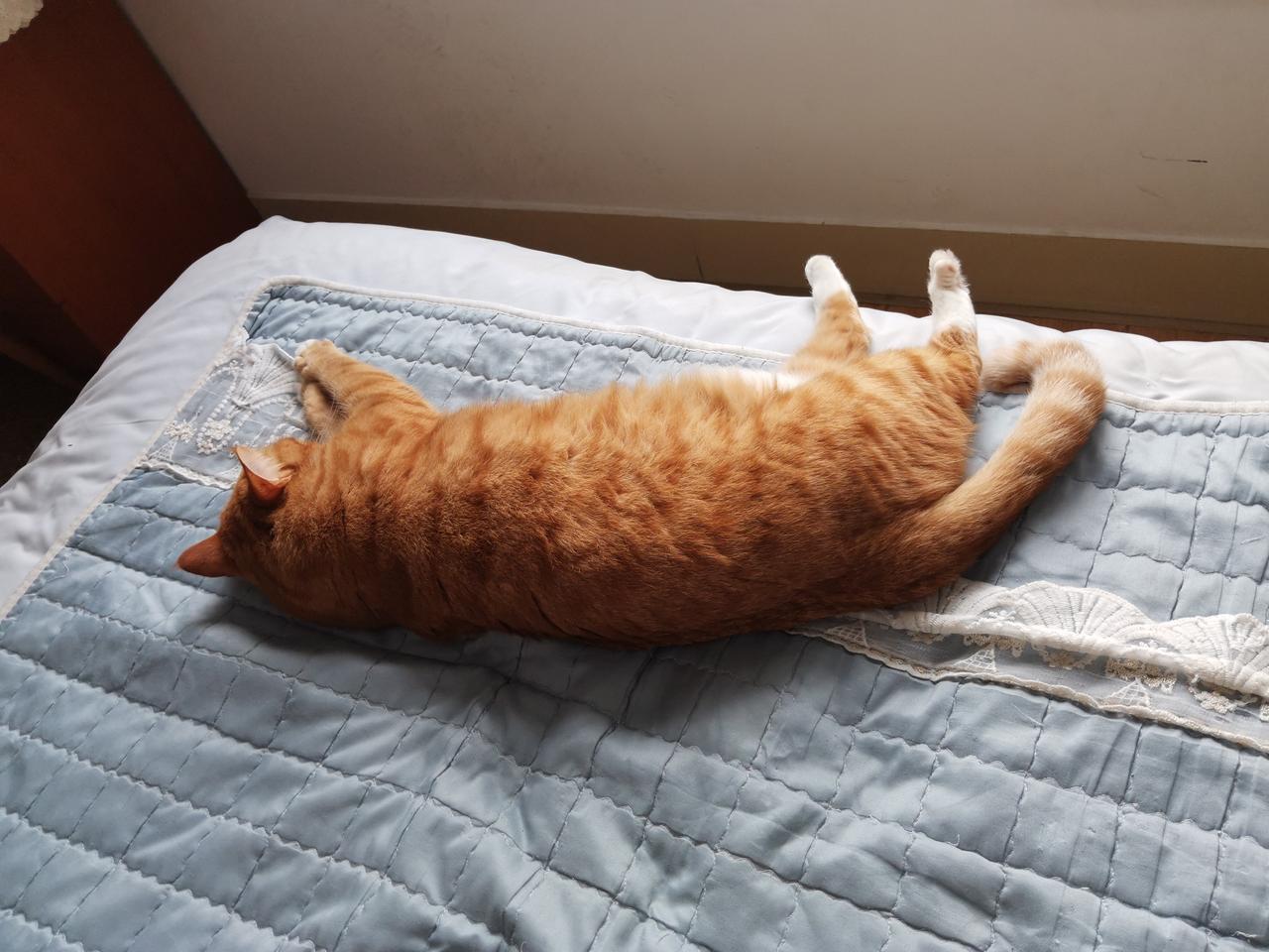 不黄吃饱了饭,除了睡就是睡还是睡。贪吃贪睡的不黄越来越肥,始终是一只大肥猫。 橘猫 贪吃肥猫