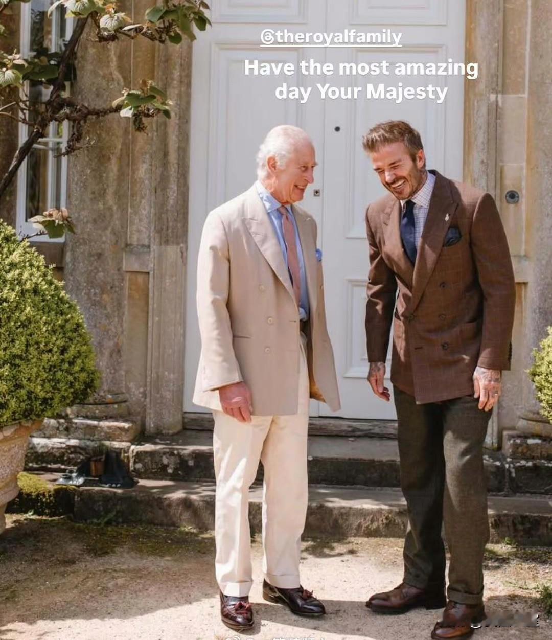 贝克汉姆封略后,发布新照祝福查尔斯国王生日快乐! 当地时间11月14日,英国国王查尔斯迎来77岁的生日,当天他收到全国各界人士的祝福。 当然贝克汉姆也很会来事,他更新社交平台祝福查尔斯国王,不得不说两位绅士的合影太养眼了! 50岁的贝克汉姆魅力依旧,帅气十足!