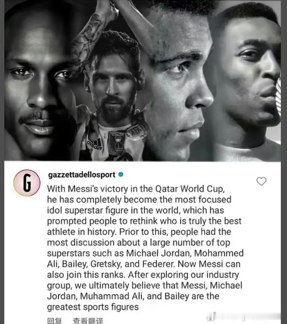 外媒评选出整个体育史上最伟大的四位运动员,赞成还是反对?
