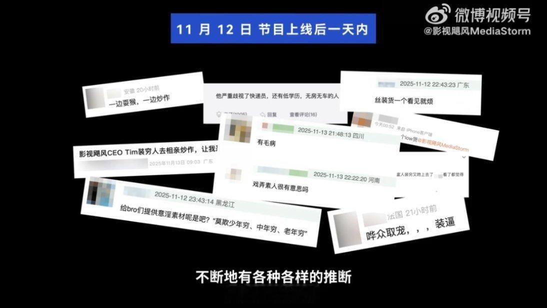 在完整看完Tim的回应视频后,不得不说他的态度十分真诚,对大众提出的所有质疑都进行了全面且细致的解答。实际上,相亲环节在整个节目中的占比不过5% 。并且,Tim当时虚心接受了几位在相亲角带着工作牌做介绍的阿姨的锐评。然而,部分营销号为了追逐流量,对视频进行恶意加工。有些营销号为避免题材撞车,不惜对视频进行二次剪辑,打乱正常的出场顺序,导致视频内容被片面解读。他们采用“切片抽象化”的恶劣手段,肆意调整对话顺序,甚至拼接其他节目素材,硬生生地将原本的视频内容扭曲成“康熙微服私访”式叙事,还刻意引导网友给Tim贴上“哗众取宠”“傲慢”“霸凌”等负面标签,从而引发了一系列误解。更有甚者,一些剪辑切片号为了流量无下限,持续编造各类臆想话题来博眼球,让整个事件完全变了味。 看到b站评论区一些理智的思考,就该知道看完完整视频的人一定不会这么想。