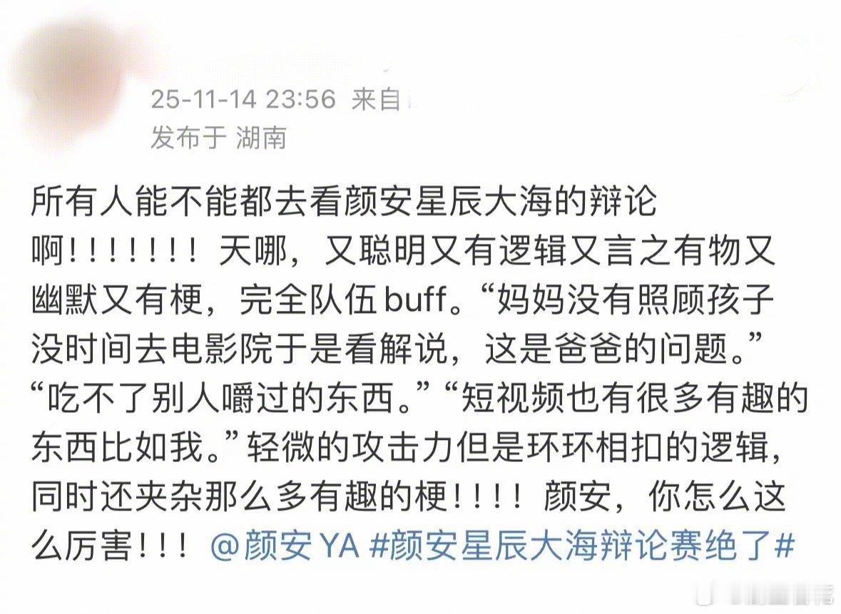 辩论场上的“一句话黑马”!颜安脱稿发言直击痛点,共情力与逻辑感双在线,实力圈粉无