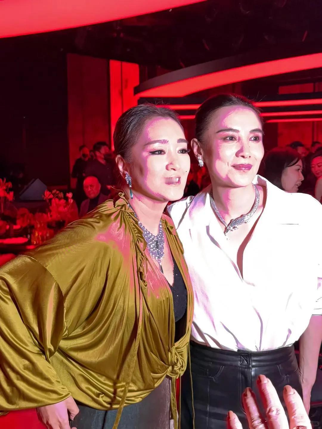 巩俐和宋佳合影的这张照片应该没有美颜,是她俩真实的颜值。她俩都是娱乐圈里的顶级大花,但属于两个时代的代表人物,也都是大飒蜜类型的女演员。她们的发型为中分贴头皮,算不算一样?穿搭风格为衬衫带项链,是不是都类同?巩俐和宋佳不美颜的真实状态也还是很美的,毕竟底子还好,气质一直在线。 巩俐写真照 宋佳 巩俐街拍 宋佳身材 宋佳演技 宋佳照片 宋佳红毯 巩俐穿搭