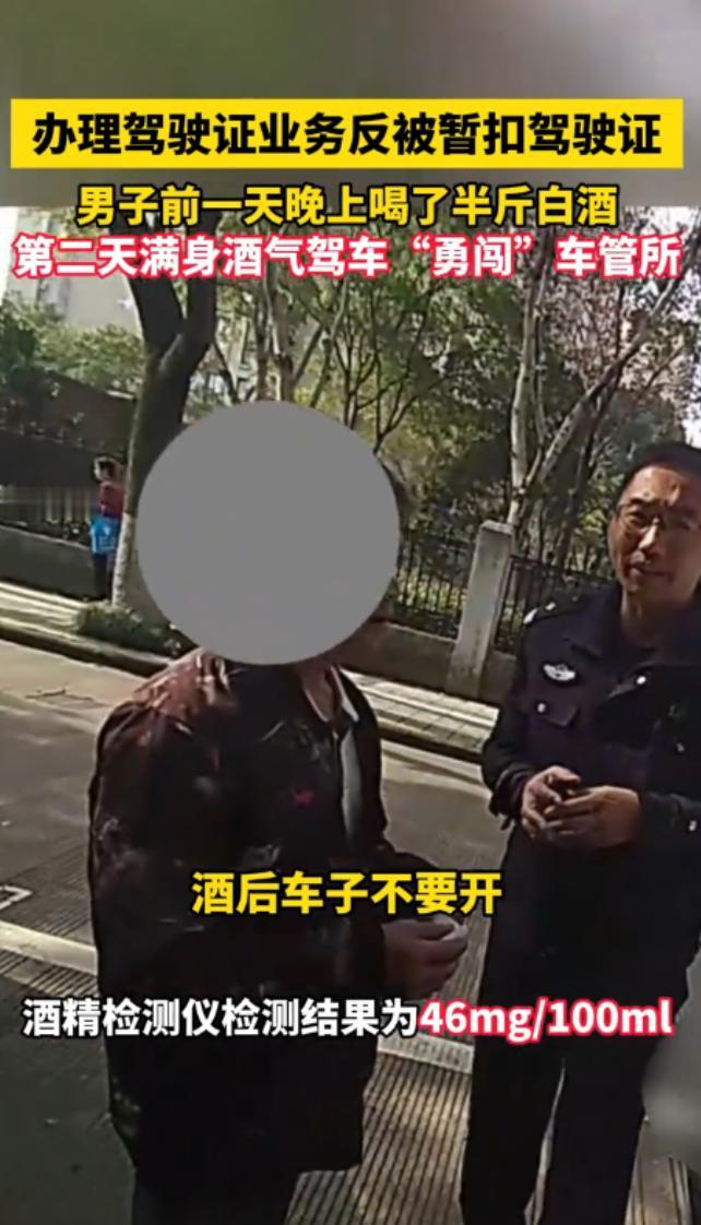 “笑不活了!”11月14日,浙江宁波,一男子前天晚上喝了半斤白酒,第二天上午,迷迷糊糊的开车到车管所办理业务,工作人员察觉到不对劲,一边稳住男子,一边悄悄联系同事,经检测,男子属于酒驾,驾驶证被扣6个月!网友:算不算自首? 11 月 14 号上午,宁波有个大哥,前一天晚上愣是喝了半斤白酒,咱都知道,半斤白酒可不是小数目,一般人喝下去估计得晕乎乎好一阵,头重脚轻的劲儿没个大半天缓不过来。结果这大哥倒好,睡了一晚上,第二天早上起来自我感觉良好,觉得酒劲儿已经散透了,头脑也清醒了,居然敢开车出门。 更绝的是他开车要去的地方不是别的,正是车管所!没错就是管驾照、管车辆的那个权威部门,他要去那儿办业务,这波目的地选择直接把讽刺值拉满了。 大哥到了车管所之后,一开口说话,那股子浓重的酒气就藏不住了,正好被接待他的工作人员闻到了,人家工作人员也是经验丰富,一下子就察觉到不对劲,这哪像是完全清醒的人啊,说话可能都带着点含糊,眼神也有点飘,精神状态肉眼可见的 “迷迷糊糊”,一看就是酒还没醒透。 但工作人员没当场戳穿他,怕他一着急做出啥冲动的事儿,比如转身就跑,或者慌慌张张开车溜了,到时候在路上因为酒精没代谢干净,反应迟钝很容易出交通事故,那后果可就严重了。 所以人家特别机智,一边笑着跟大哥说 “您稍等一下,我这边帮您查一下资料,可能得耽误几分钟”,一边不动声色地悄悄联系了同事,让同事赶紧通知交警过来。 也就过了五分钟吧,交警就带着酒精检测仪赶过来了,一测可不得了数值直接飙到了 46mg/100ml,这妥妥的饮酒后驾驶啊!大哥当时估计也懵了,他可能是真觉得自己睡了一夜已经醒酒了,没想到仪器一测直接打了脸,这 “清醒的幻觉” 瞬间就碎了。 最后结果就是,大哥不仅要面临罚款,驾照还得暂扣六个月,想开车都开不了了,业务没办成不说,还把自己送进了法网,这波操作真是赔了夫人又折兵。 这事儿一传到网上,网友们直接炸了锅,评论区全是哈哈哈哈的笑声,大家都快把这大哥调侃坏了,有人说 “这算不算自首啊?主动开车到执法部门门口被查,估计交警都没想到还有这种‘送上门的业绩’”。 还有人开玩笑说 “年度大聪明非他莫属,这波操作我给满分,就是智商不在线”,甚至有人调侃 “大哥这是生怕交警找不到他,特意跑车管所报信呢”。不得不说网友们的脑洞是真的大,但这话也没毛病,换谁看了都得说一句 “这操作太绝了”。 其实说真的这大哥也不是故意要违法,就是犯了咱很多人都可能犯的错,觉得头天晚上喝酒,只要睡一觉,第二天早上就没事了,咱身边是不是也有这样的人?总觉得 “隔夜酒” 不算酒,只要不头疼、不头晕,就能开车。 但实际上酒精在身体里的代谢是需要时间的,尤其是喝了半斤白酒这种高度酒,代谢起来更慢,可能睡了一夜,血液里的酒精浓度还是超标了,这就是所谓的 “身体在骗自己”,主观上觉得清醒了,但生理上的酒精还没排干净,一遇到酒精检测仪就露馅了,这大哥刚好就踩中了这个坑。 这事儿还得感谢车管所的那位工作人员,真是太机智、太负责了!如果当时工作人员直接戳穿大哥,大哥可能会慌神,万一开车跑了在路上出点意外,后果不堪设想。 工作人员一边稳住大哥,一边悄悄联系交警,既保证了能顺利查到他的酒驾行为,又避免了可能发生的危险,这波处置真的太到位了,她就像个 “隐形哨兵”,守住了交通安全的一道防线,要是每个遇到这种情况的人都能这么警觉,估计能少很多酒驾隐患。 不管喝多喝少,只要沾了酒就别想着开车,哪怕过了一夜,也最好先找个地方测测酒精浓度,或者干脆找代驾、坐公交、打车,别抱着侥幸心理,不然到时候像这位宁波大哥一样,把自己送到车管所被查,可就真的笑不活了,而且笑过之后,更多的是不值当。 (信息来源:《办理驾驶证业务反被暂扣驾驶证 男子前一天晚上喝了半斤白酒,第二天满身酒气驾车“勇闯”车管所》宁波晚报)