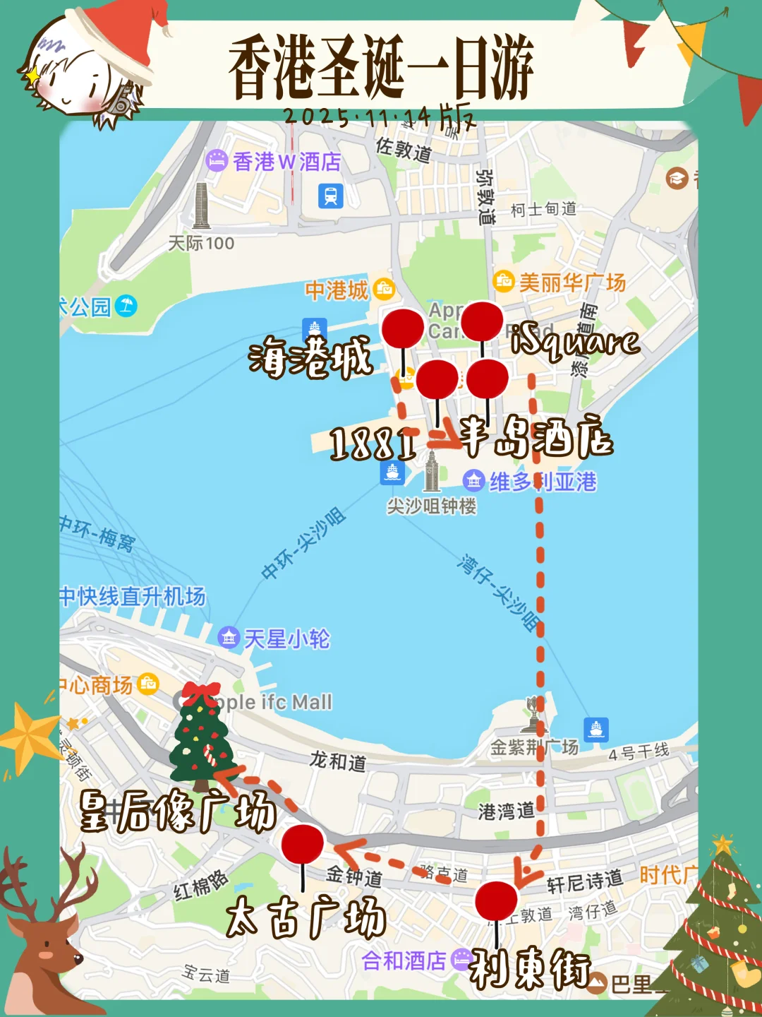 海港城 - 1881 - 半岛酒店 - iSquare - 利东街 - 太古广场 - 中环皇后像广场(圣诞小镇)