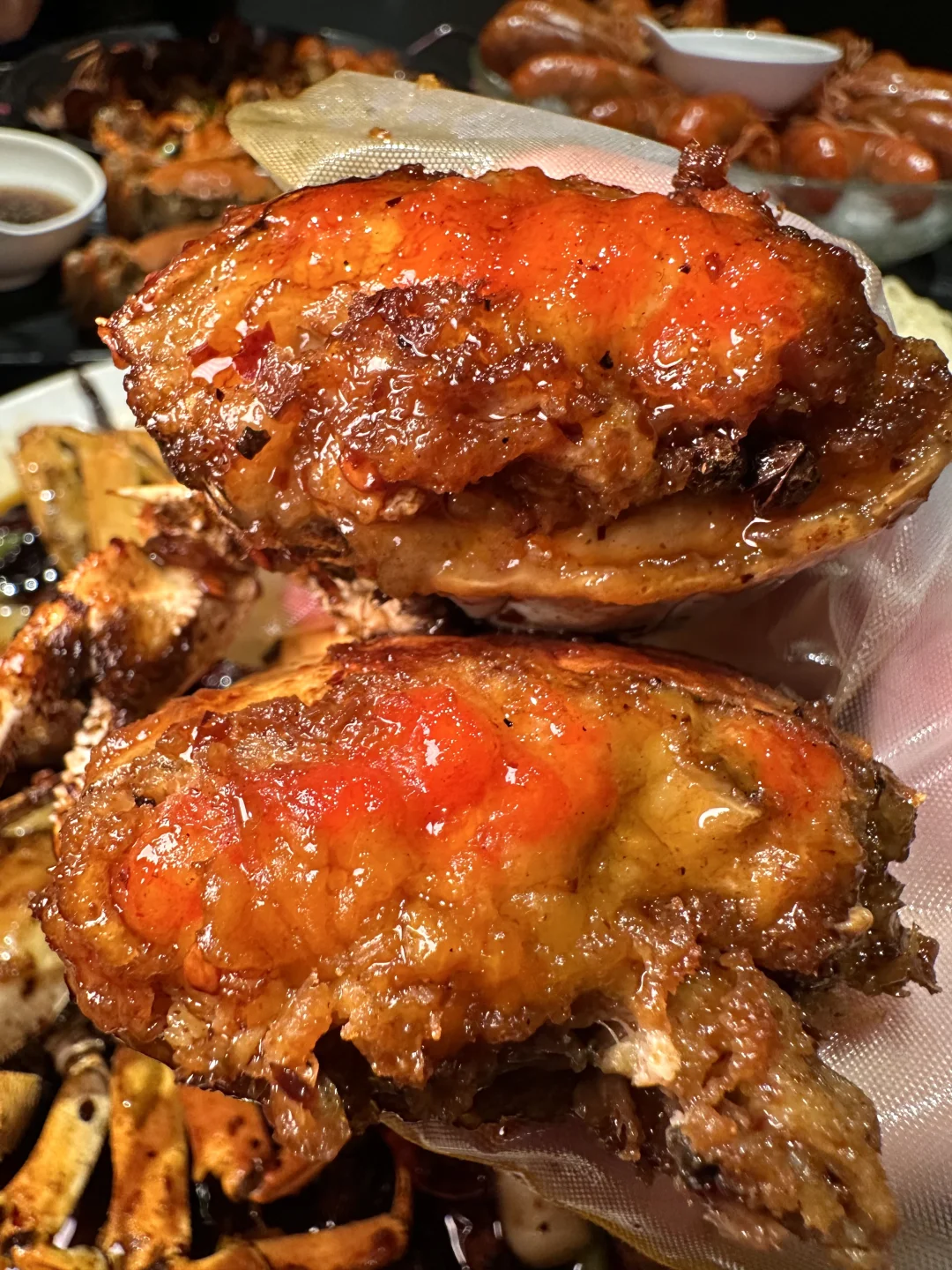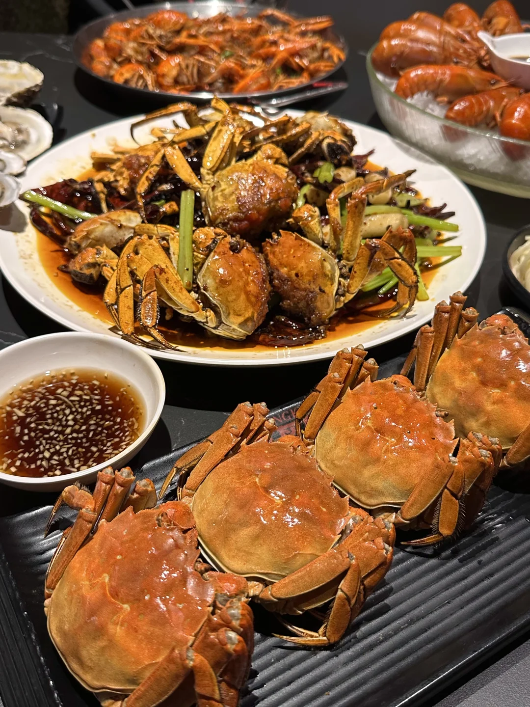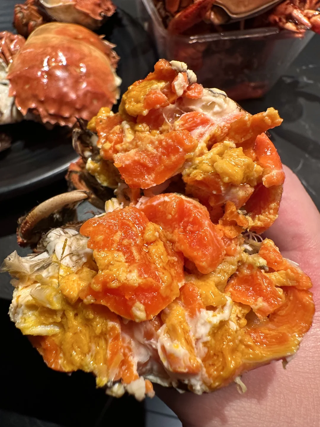不愧是上海本地人推荐的! 和朋友五个人,随便点的清蒸大闸蟹和麻辣大闸蟹🦀蟹大又肥美,麻辣大闸蟹切面全是蟹黄 上海上海美食上海旅游攻略大闸蟹