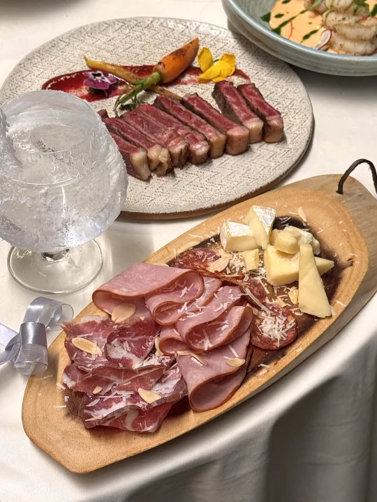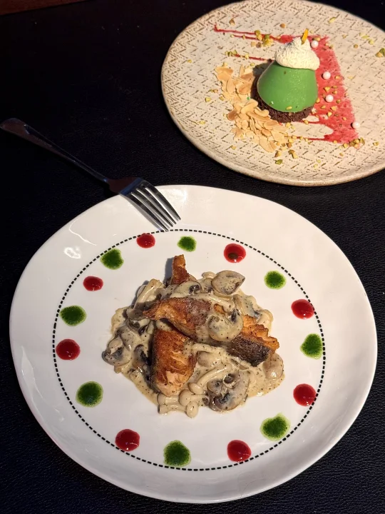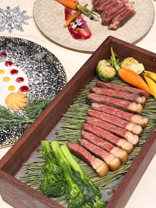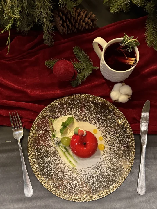 杭州也太超前了。。11月率先拍到圣诞餐厅了!圣诞树、花环、烛台、雪花❄️…氛围感拉满!该怎么形容这家店我有多喜欢啊啊! · 就在钱江世纪公园!叫:山海📍)每次必点的苹果木烟熏和牛牛排!肉质紧实多汁自带坚果香气🤤奶油烩三文鱼什锦菌菇、冷食拼盘…好好吃!还有各种圣诞甜品 圣诞铃铛、圣诞树、红苹果慕斯🍎…全都jujuju可爱! 门口还有圣诞雪景随便拍拍都很出片📷不管是来这里约会还是分手都很合适!