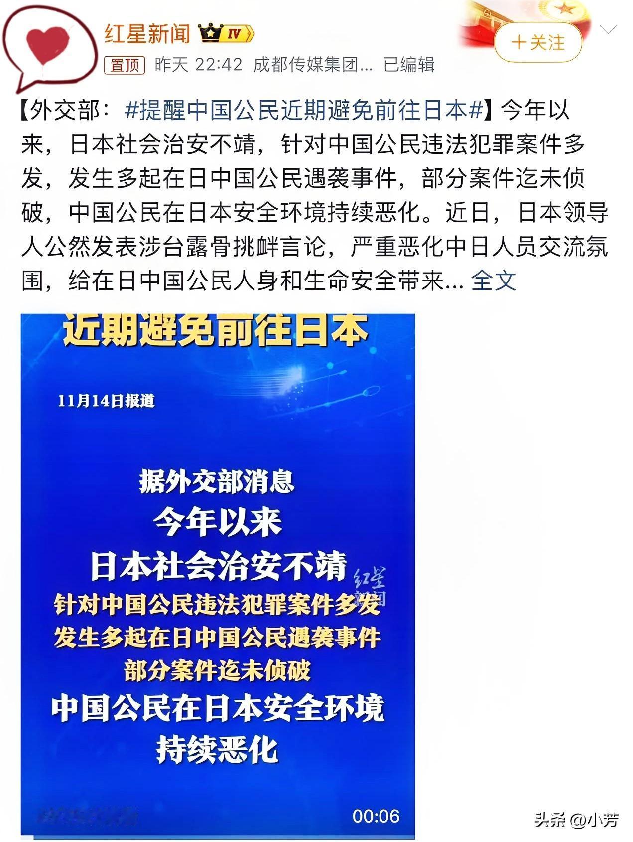 凌晨所有官媒下场 提醒国人近期避免去日本 而且我们军舰已经开过去了 是带着补给舰去的:意思很明显了 绕圈围上了“现在就差撤侨了” 兄弟们可以准备开始健身了 新仇旧恨一起报 族谱单开一页的时候也许到了 你认为高市早苗会成日本最“短命”的首相吗 这可不是小题大做 官媒提醒是因为在日同胞安全风险飙升军舰带补给舰巡航 更是对高市早苗涉台挑衅的硬核回应 历史伤痕加现实挑衅 中方的动作里全是底线不容触碰的信号 所谓“新仇旧恨” 本质是对主权的捍卫和历史的铭记 我们从不主动挑事但绝不怕事 高市早苗的强硬姿态 大概率是搬起石头砸自己的脚 你觉得高市早苗的首相位置能坐多久呢