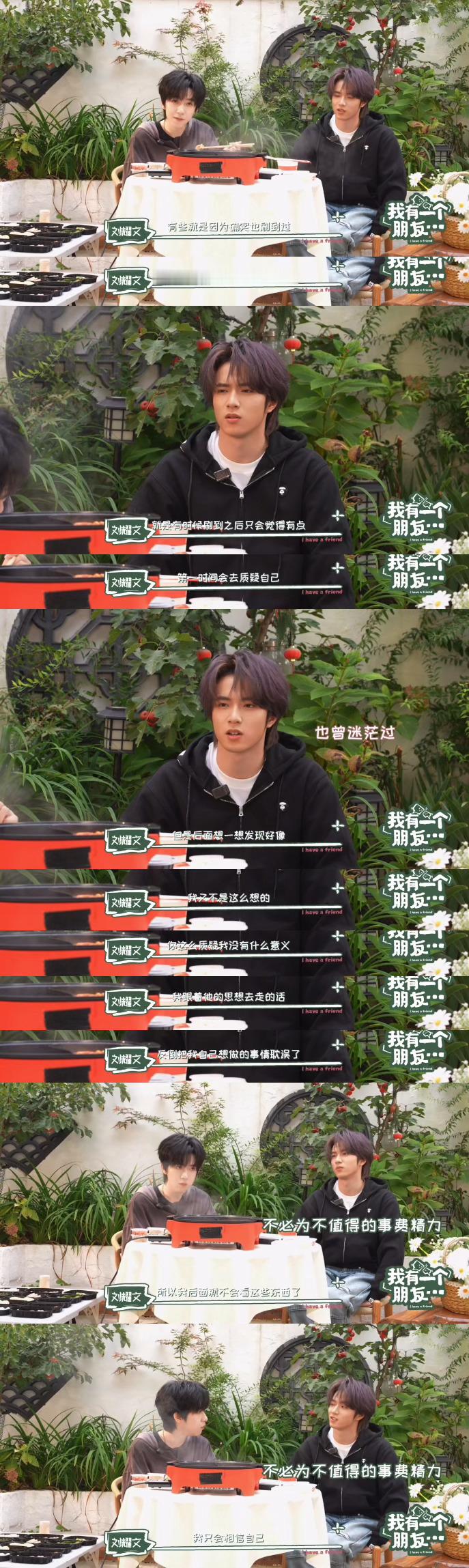 我必须学习刘耀文清醒且不内耗的心态“我不怎么刷那些,说我坏的人。”“有时候刷到之后只会觉得有点,第一时间会去质疑自己,但是后面想一想发现我又不是这么想的,你这么质疑我没有什么意义。”“我跟着他的思想走的话,反倒把我自己想做的事情耽误了。”“我只会相信自己。”