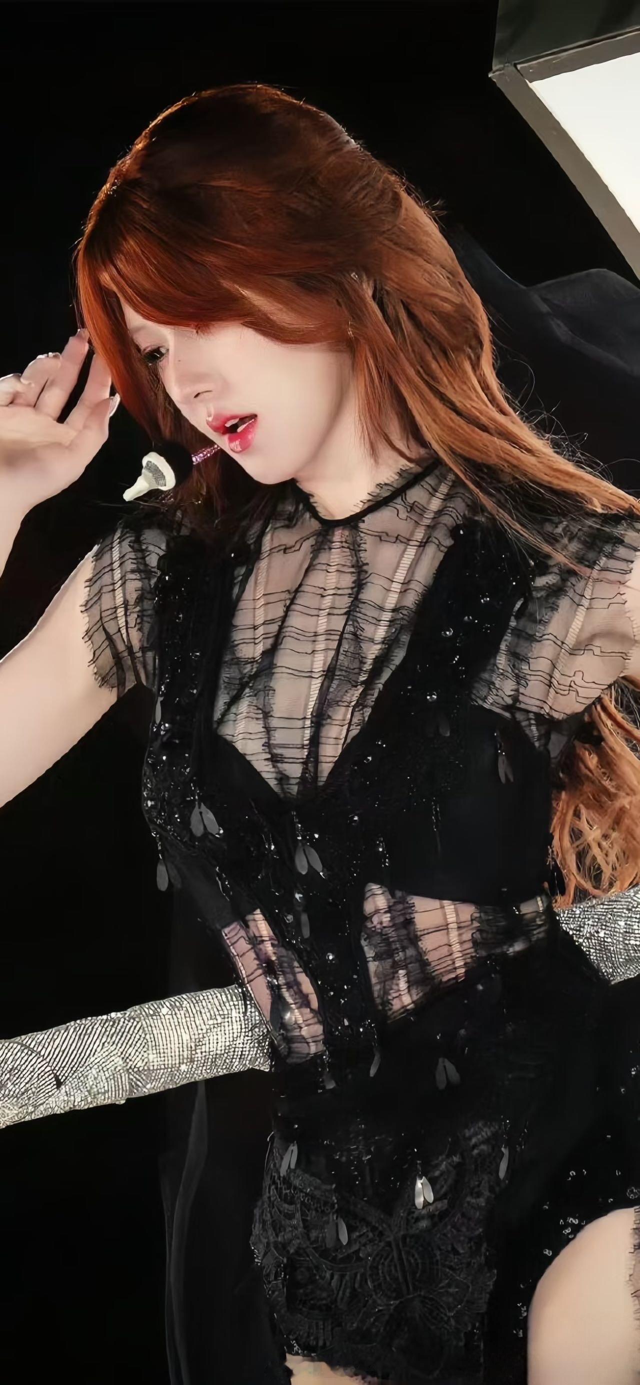 亦菲黑色晚礼服,显视修长天鹅颈🦢
