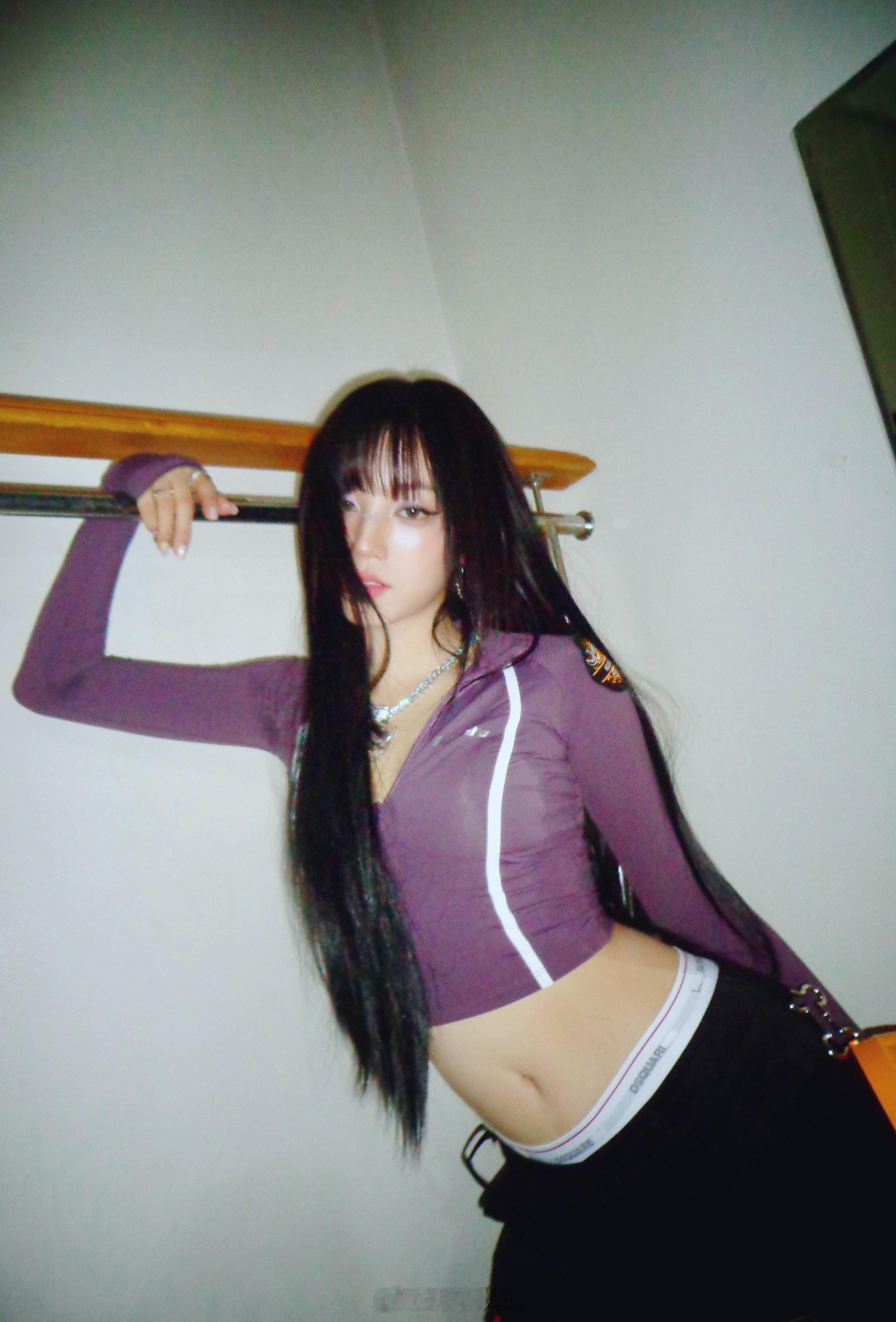 宋雨琦楼梯大片一身紫色热裤,又酷又美