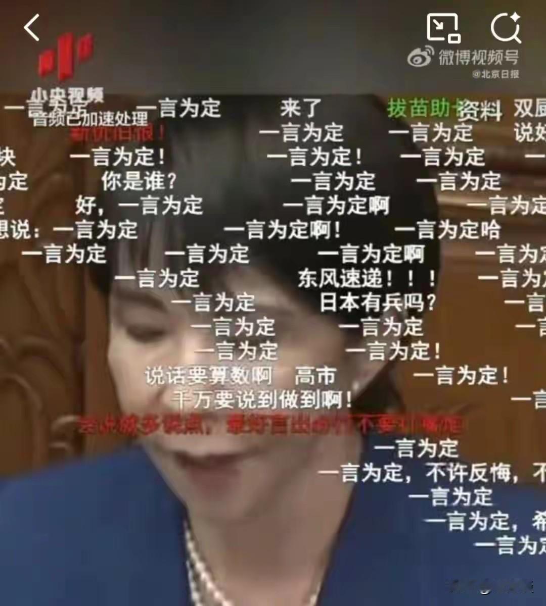 满屏的一言为定,这是中国网友对日本首相搞事早苗关于台湾言论的回应,也是我们国家对搞事早苗的回应,代表了民意,积蓄了80年的家国仇恨,希望他们不要怂,来一次最终对决,把80年的仇恨全部还给他们!虽然近代以来侵略中国的国家很多,但是对于日本,中国有一种发自内心的仇恨,对任何国家都可以原谅,唯独对这个国家无法原谅。现在他们还发出如此挑衅的言论,那就让暴风雨来得更猛烈些吧,就来一次激烈的碰撞,看一下日本有事到底是怎么回事!看一下富士山还能保留不!