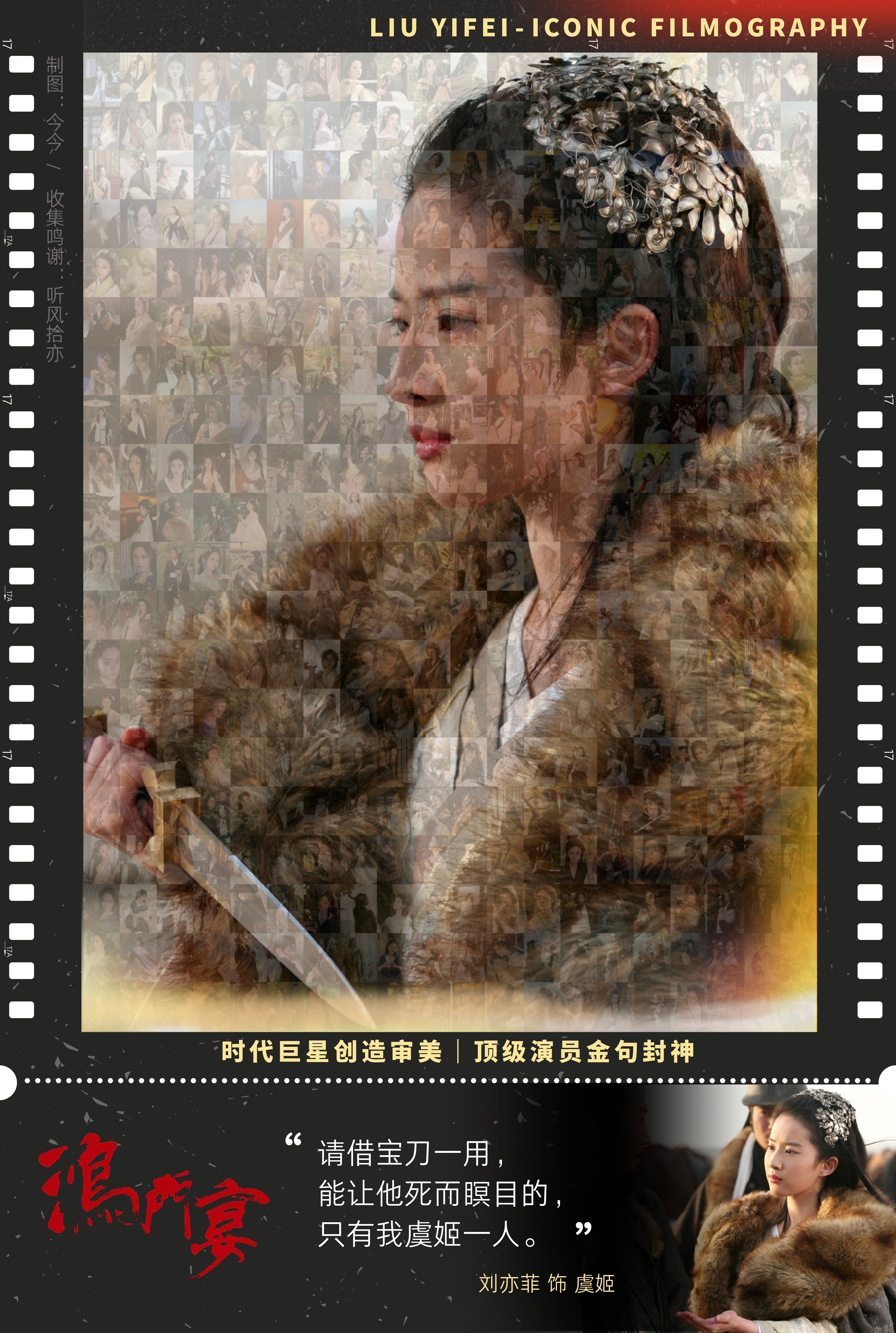 和 一起做的大工程(太努力了我们“Liu Yifei - Iconic Filmography”聚焦时代Icon刘亦菲经典作品、角色和爆火台词每一张角色ticket都是对顶级演员刘亦菲的艺术成就和刘亦菲效应影响力的总结回顾今日主角:《鸿门宴传奇》虞姬顺便预告下《恋爱通告》宋晓青