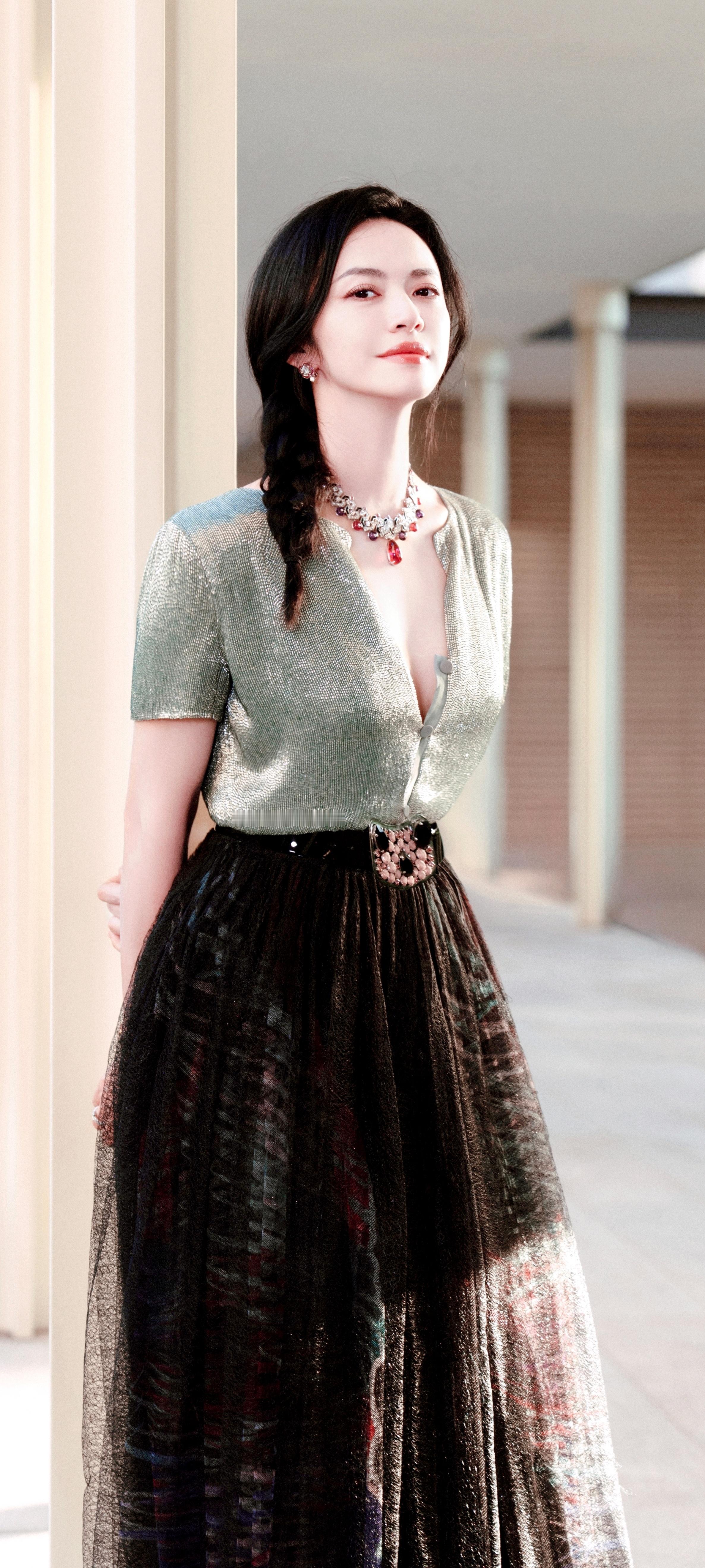 刘亦菲把死亡玫粉穿出了定制款的感觉,这种颜色普通人穿上分分钟黑三度,她居然能穿出