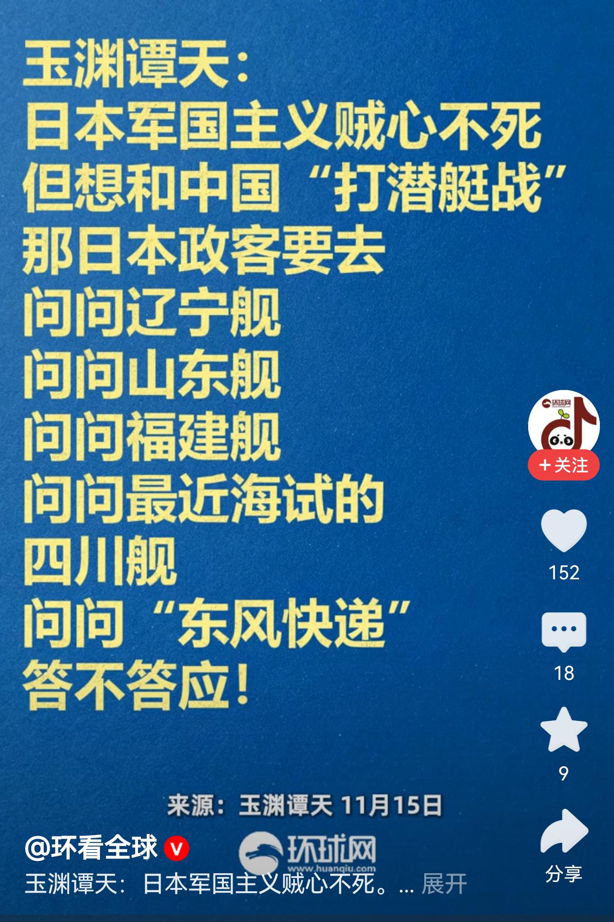 日本军国主义贼心不死! 毛主席说过:永远不能忘记日本侵华,14年杀害我同胞3500万,这个血海深仇不共戴天,时刻要提防他! 日本军国主义胆敢出来搞事,想给中国搞事,问问山东舰、辽宁舰、福建舰,问问东风快递,问问人民解放军,问问14亿中国人答不答应!如果日本军国主义意识不到与如今强大的中国为敌的后果,那么必将被清算,日本政客要问问,旧恨加新仇在一起,是否能承受带来的后果! 一代人有一代人的使命,一代人有一代人的上甘岭!先辈无所畏惧,我们亦当如此!