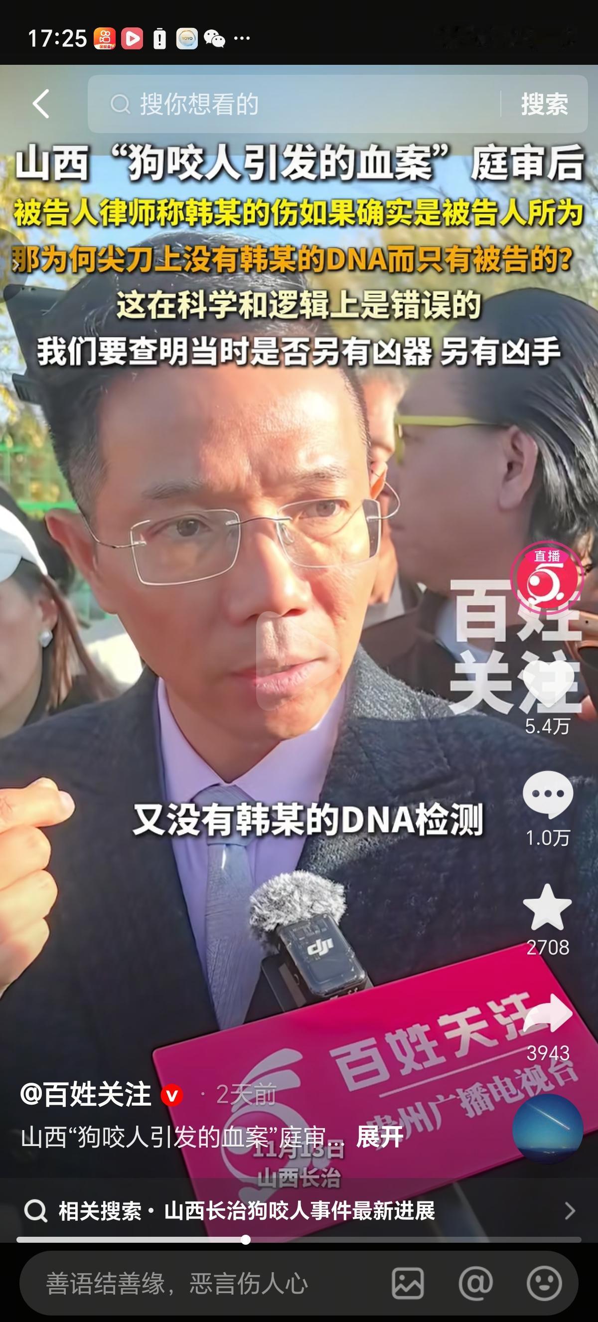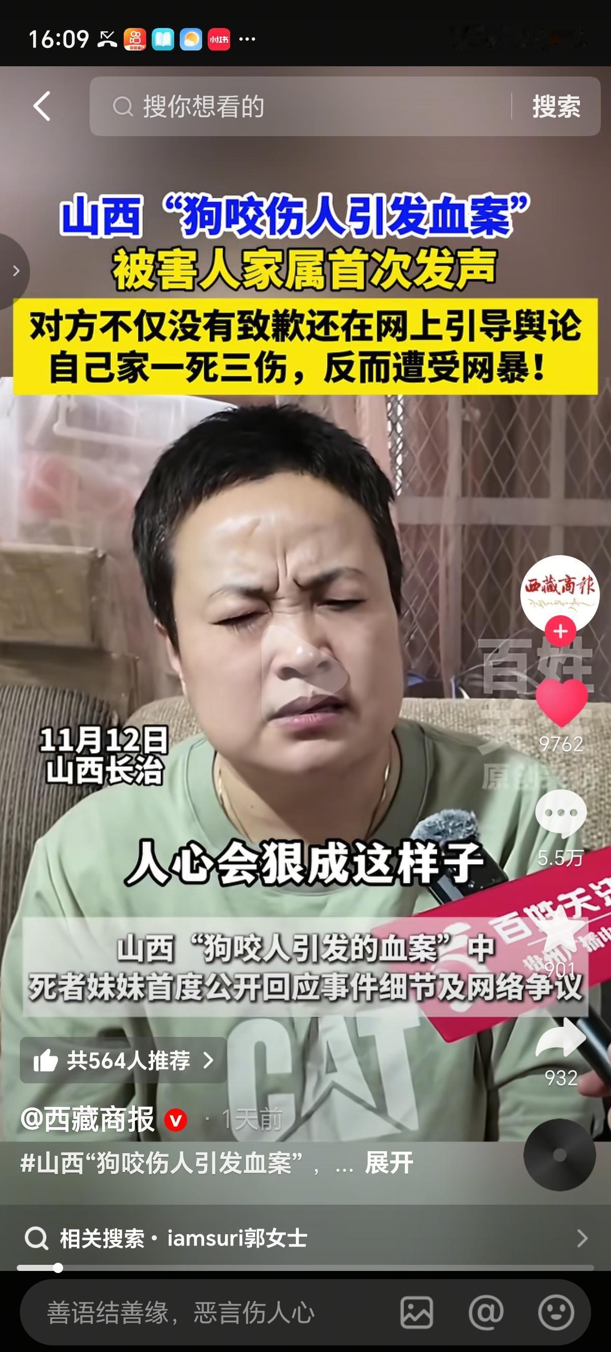 带头砸玻璃的嫂子赵某晖销声匿迹了,庭审都不去,当天没去砸玻璃的小姑子主动出来还原事情真相。她最可怜,哥哥没了,老公跟着嫂子去砸玻璃受伤了,还因为涉嫌非法侵入住宅罪被采取了刑事强制措施。 小姑子的老公还真说不好是被谁伤的,申红良的剔骨刀上没有小姑子老公韩某的DNA,他受伤后曾喊“谁拿剪刀扎我头来”,申红良也声称看到郭勇刚拿着一个红色、前端尖尖的东西。 不管狗链子多长,咬人了是事实,郭家赔狂犬疫苗钱,申家赔狗钱。他老公受伤是要不到赔偿了,不管是她哥哥还是嫂子,或者是嫂子的外甥伤的,都白挨了。