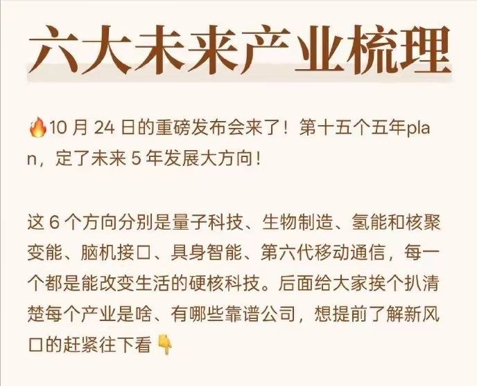 六大未来产业全景图谱:前沿赛道+核心企业全解析以下六大产业聚焦未来5-10年科技发展前沿,凭借颠覆性技术与广阔应用场景,有望重塑产业格局、改变社会生活,其核心赛道与代表企业如下:1. 量子科技- 产业简介:以量子力学为理论基础,涵盖量子计算、量子通信、量子测量三大核心方向,凭借超强算力、绝对安全通信、超高精度测量等独特优势,成为数字时代核心技术支撑。- 代表企业:- 华工科技:深耕量子传感与通信器件研发,旗下量子传感器已成功落地工业检测场景,技术实用性突出;- 中天科技:量子通信光缆核心供应商,凭借成熟的生产工艺与稳定的产品品质,占据较高市场份额;- 中国长城:聚焦量子安全计算机领域,自主推出国产量子安全服务器,筑牢信息安全防护屏障。2. 生物制造- 产业简介:以合成生物学、生物催化等前沿技术为核心,采用绿色低碳生产模式,规模化制造化学品、新材料、健康食品原料等产品,契合“双碳”战略与产业升级需求。- 代表企业:- 华恒生物:全球领先的氨基酸衍生物供应商,布局“人工智能精准发酵”项目,通过技术创新提升生产效率与产品纯度;- 百龙创园:功能糖及健康食品原料龙头企业,核心产品低聚果糖全球市占率稳居第一,市场竞争力强劲。3. 氢能与核聚变能- 产业简介:氢能产业链覆盖制氢、储氢、运氢及燃料电池应用,是清洁能源领域的重要方向;核聚变能作为“终极清洁能源”,具有零排放、燃料充足等优势,未来潜力巨大。- 代表企业:- 亿华通:国内燃料电池系统龙头,在商用车领域装机量领先,技术适配性与市场认可度高;- 合锻智能/安泰科技/中核科技/中国核建:分别在核聚变设备制造、核心材料研发、专用阀门供应及工程建设领域占据核心地位,构成核聚变产业关键支撑。4. 脑机接口- 产业简介:通过技术手段实现大脑与外部设备的直接通信,打破人机交互壁垒,广泛应用于医疗康复、科研探索等领域,为疑难病症治疗与智能交互升级提供新路径。- 代表企业:- ST华通/乐普医疗/成都华微/道氏技术/汉威科技:分别在脑机接口科研合作、医疗监测设备研发、专用芯片设计、核心传感器制造等方面深度布局,覆盖产业链多个关键环节。5. 具身智能- 产业简介:核心是让机器人通过物理实体与外部环境自主交互,实现感知、决策与执行的一体化,人形机器人是其主要载体,有望在工业生产、民生服务等场景大规模应用。- 代表企业:- 优必选:人形机器人领域全球领军企业,凭借领先的运动控制与人工智能技术,斩获大量融资与商业订单,引领行业发展方向。6. 第六代移动通信(6G)- 产业简介:相较于5G,具备太赫兹通信、天地一体化组网、超低时延、超大连接等特性,是支撑未来数字社会、智能经济的核心基础设施,将开启万物智联新时代。- 代表企业:- 创远信科:6G测试设备领域领军企业,为6G技术研发与标准制定提供关键测试支撑;- 中兴通讯:深度参与6G技术研发与国际标准制定,凭借深厚的通信技术积累,成为赛道核心参与者。