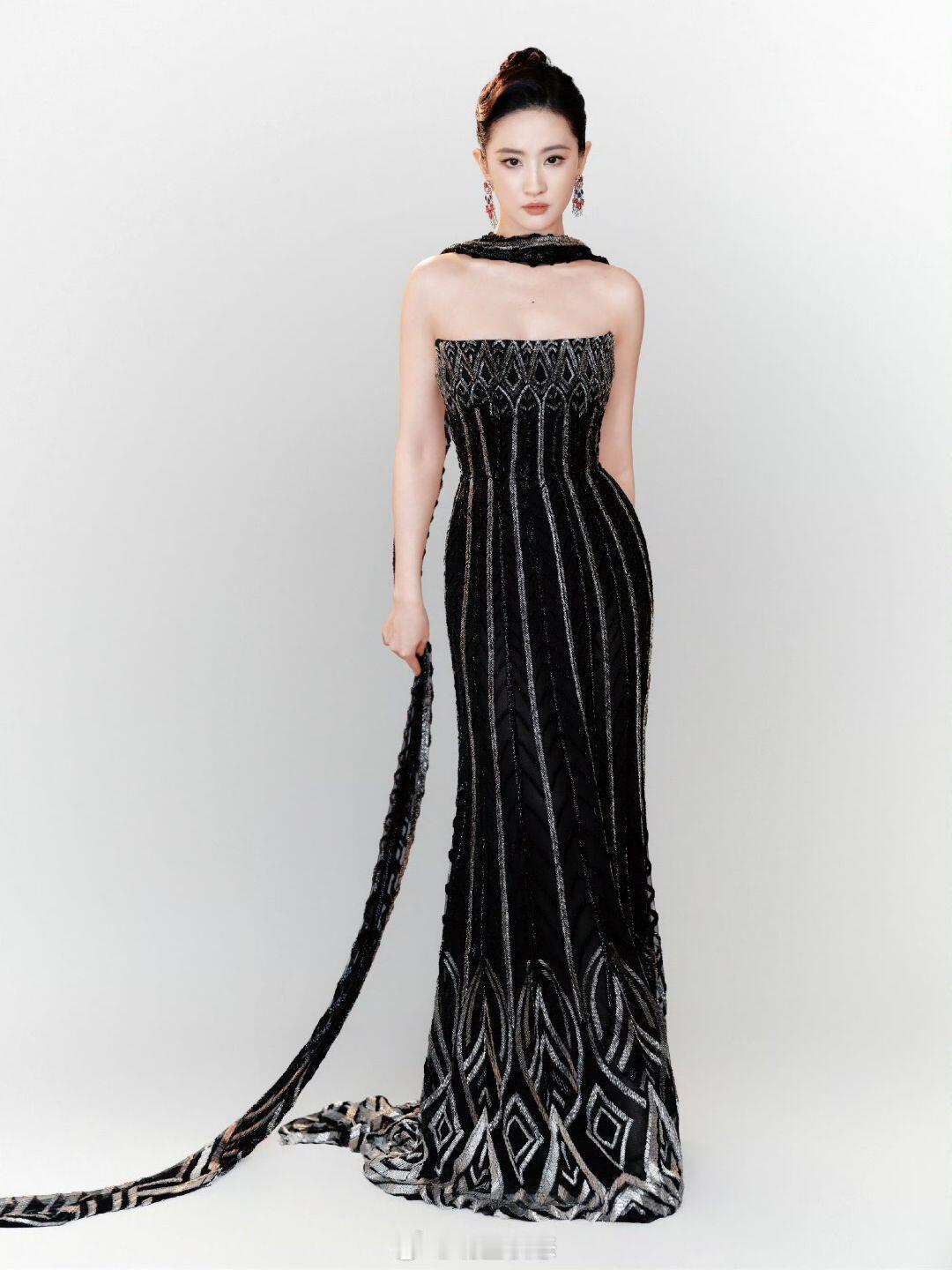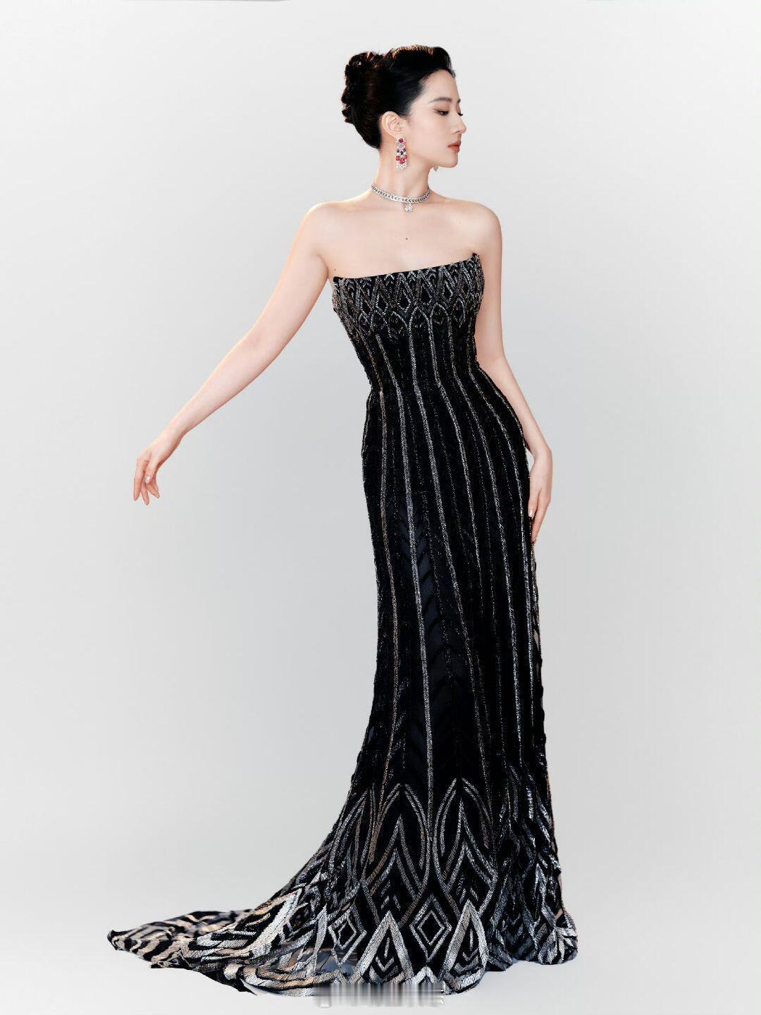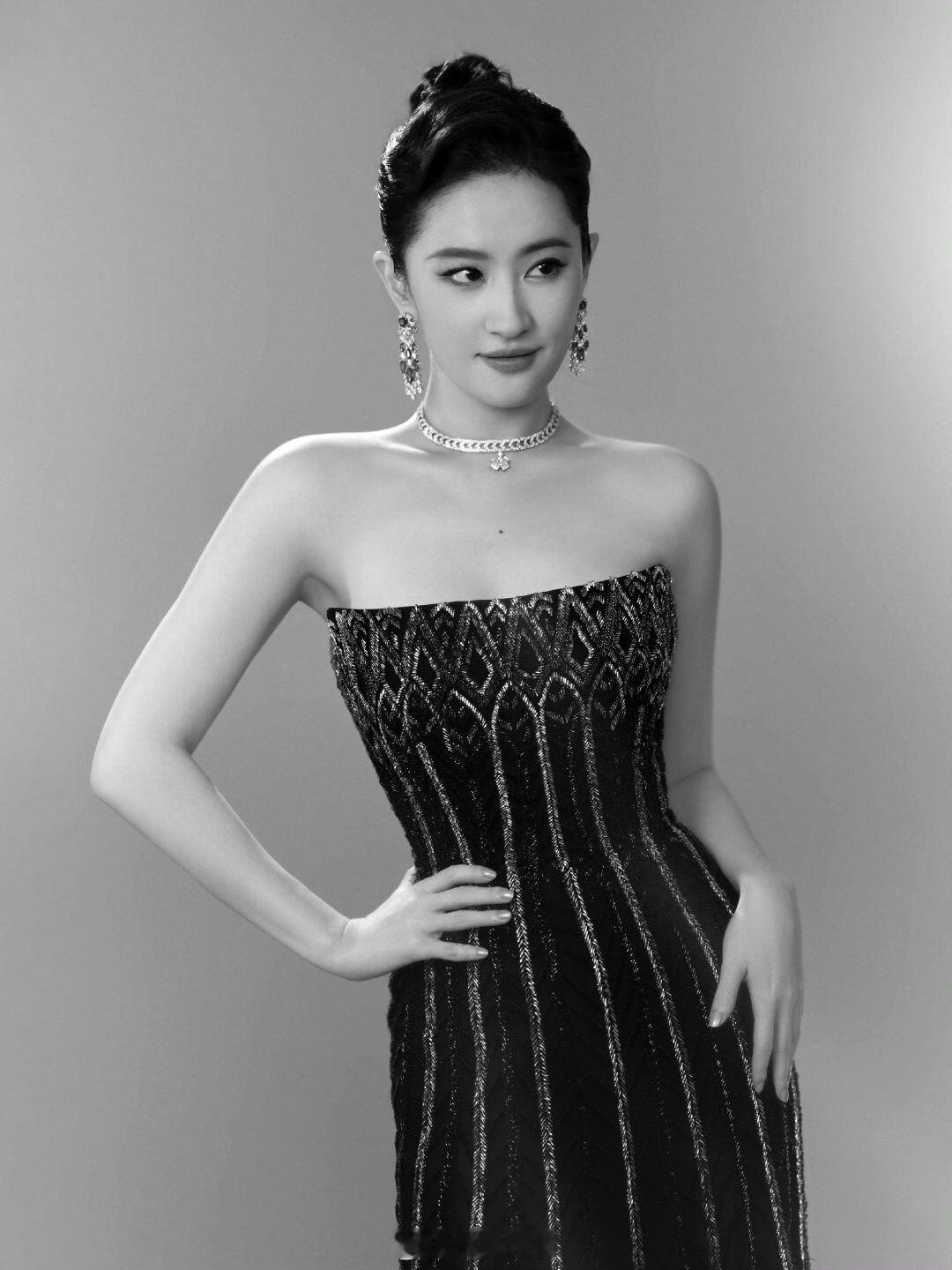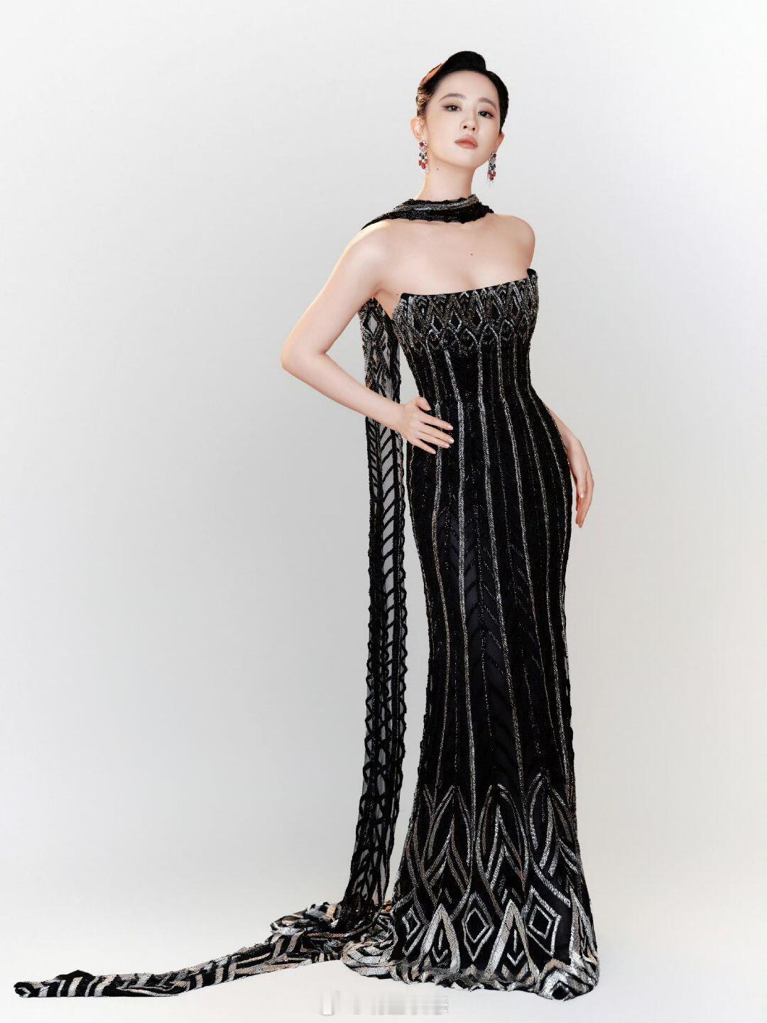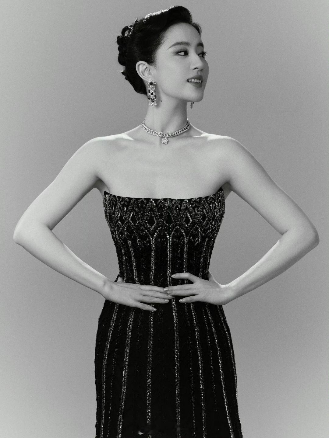 亦菲黑色晚礼服,显视修长天鹅颈🦢