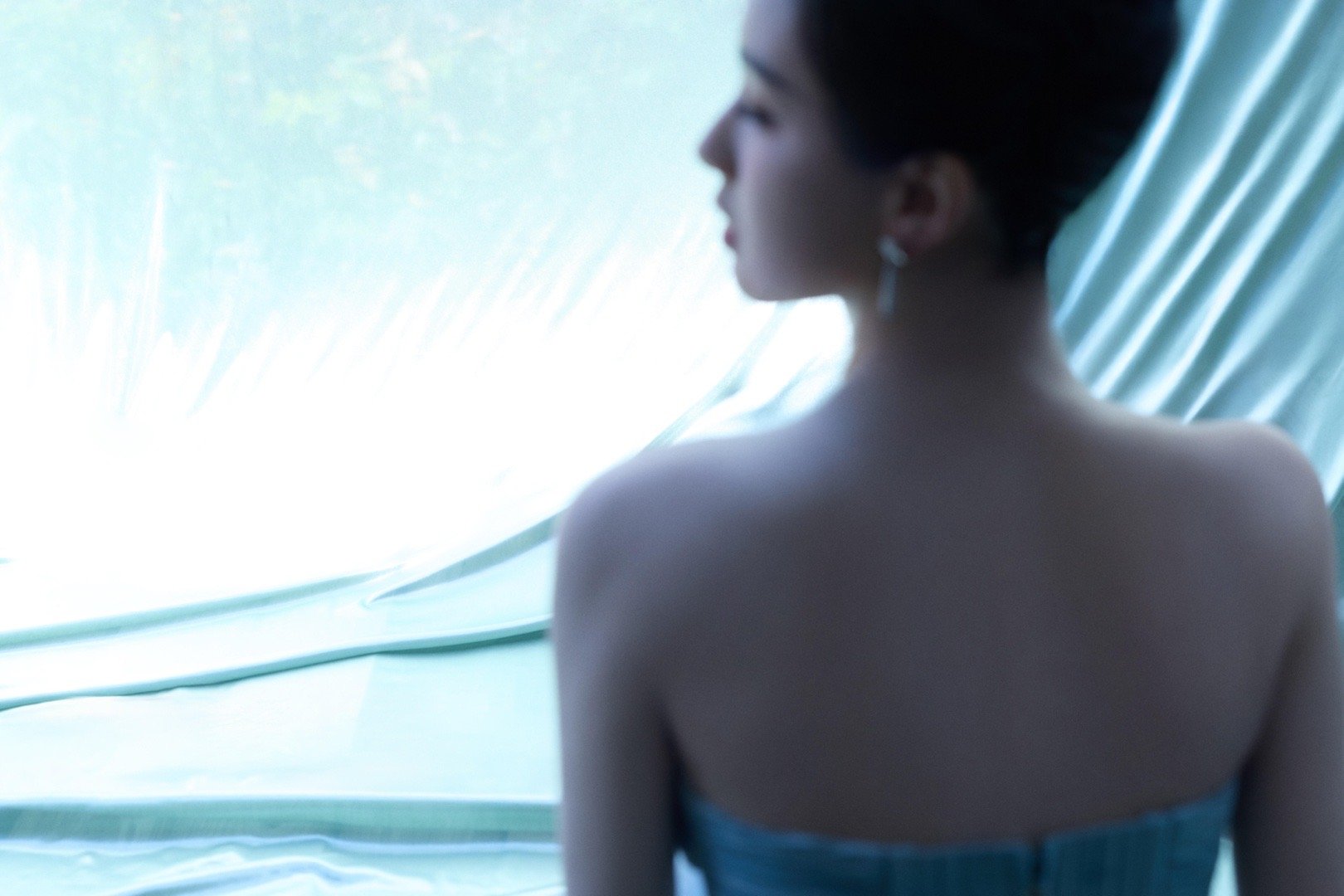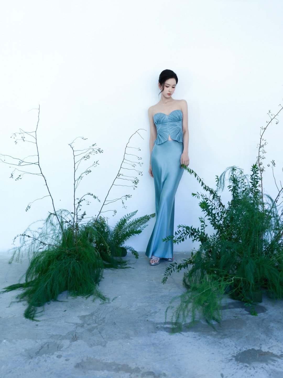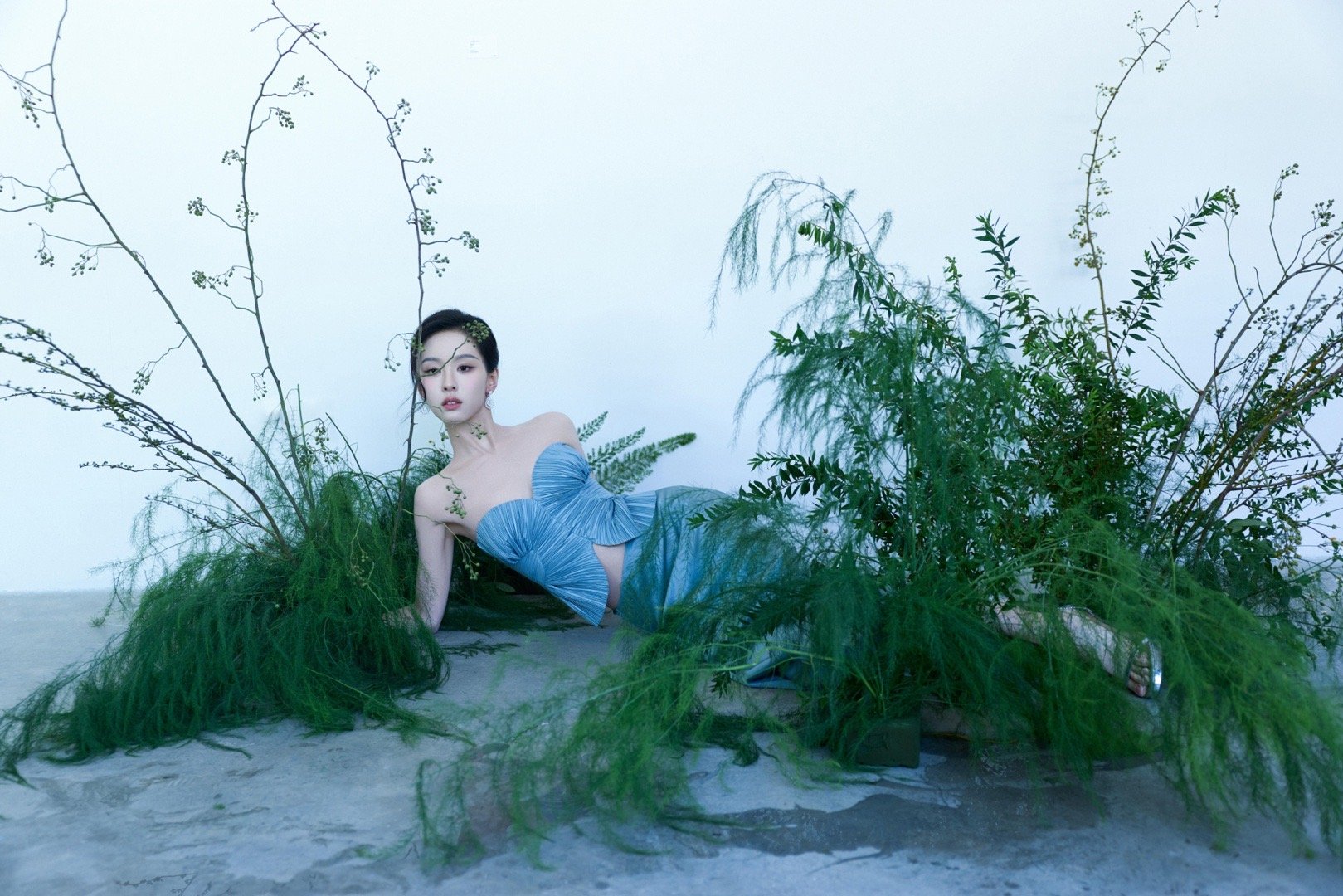 陈都灵金鸡奖第二套造型!太美了,像松树里的蓝色贝壳