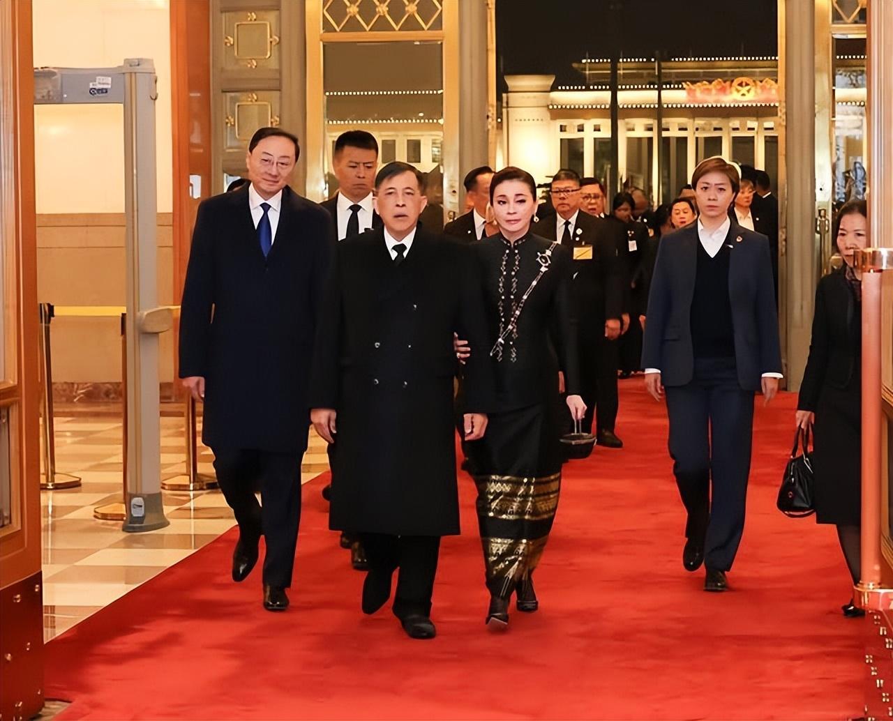 泰王后苏提达终于取得了“终极胜利”!出席天朝国宴放大招,斜跨宝石链,身材气质太绝~ 泰国国王50年首次访华,陪在他身边的只有王后苏提达一人。身为正妻的她,这一刻终于不用提防泰王身边的众多莺莺燕燕,貌似整个人瞬间松弛了,不仅一改在国内战战兢兢的严肃表情,还笑得特别甜美灿烂,无数人都被她美到了!特别是自信满满地挽着泰王手臂,走入人民大会堂出席隆重国宴时,一身黑色的传统泰服裙,用金色刺绣做点缀,轻松打破了黑色的暗沉感,还凸显出满满的高级感,更绝的是没选择戴奢华项链彰显贵气,而是手提香炉包,斜跨一条金色宝石腰链示人,意外打造出别具一格的摩登一面,完全挑不出一点瑕疵,造型满分啊!这一高光时刻,那种母仪天下的感觉具象化了!苏提达,你赢了!