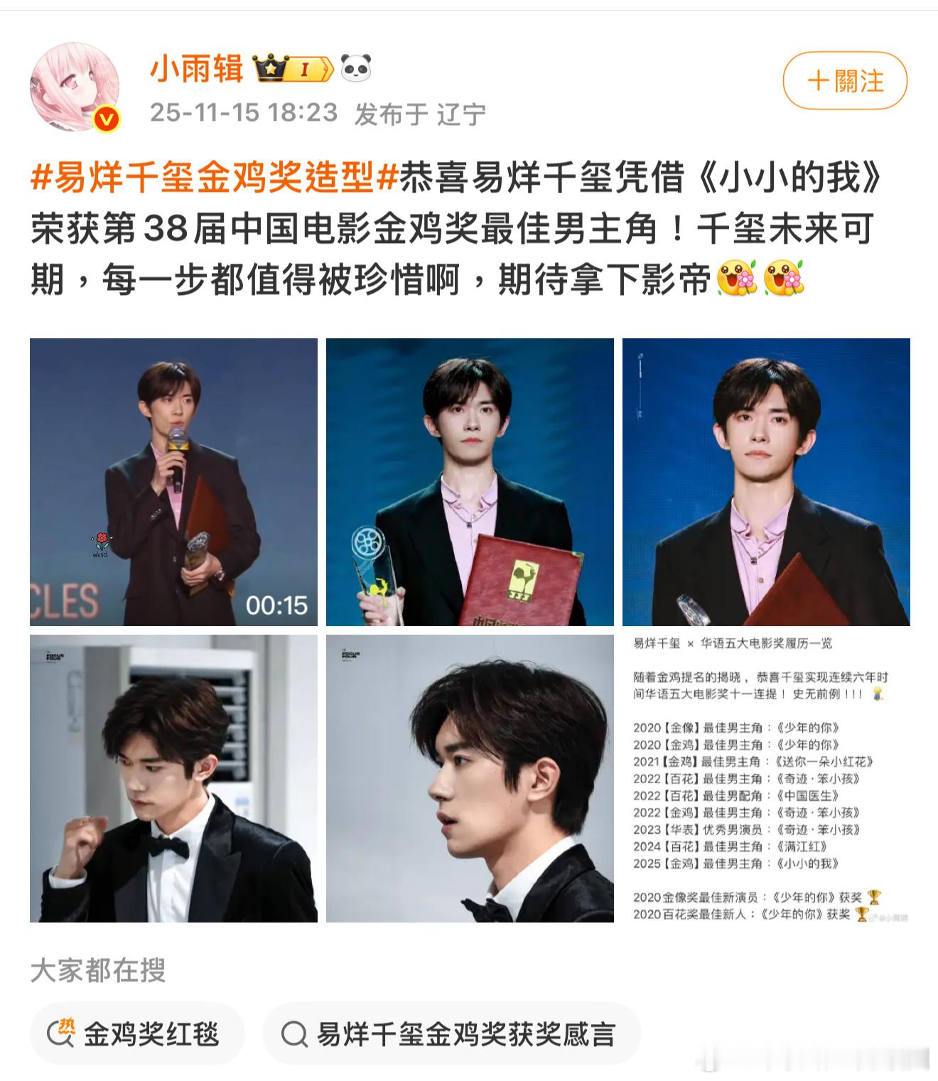 易烊千玺获奖的文案都发出来了小螃蟹今晚要睡不着觉了