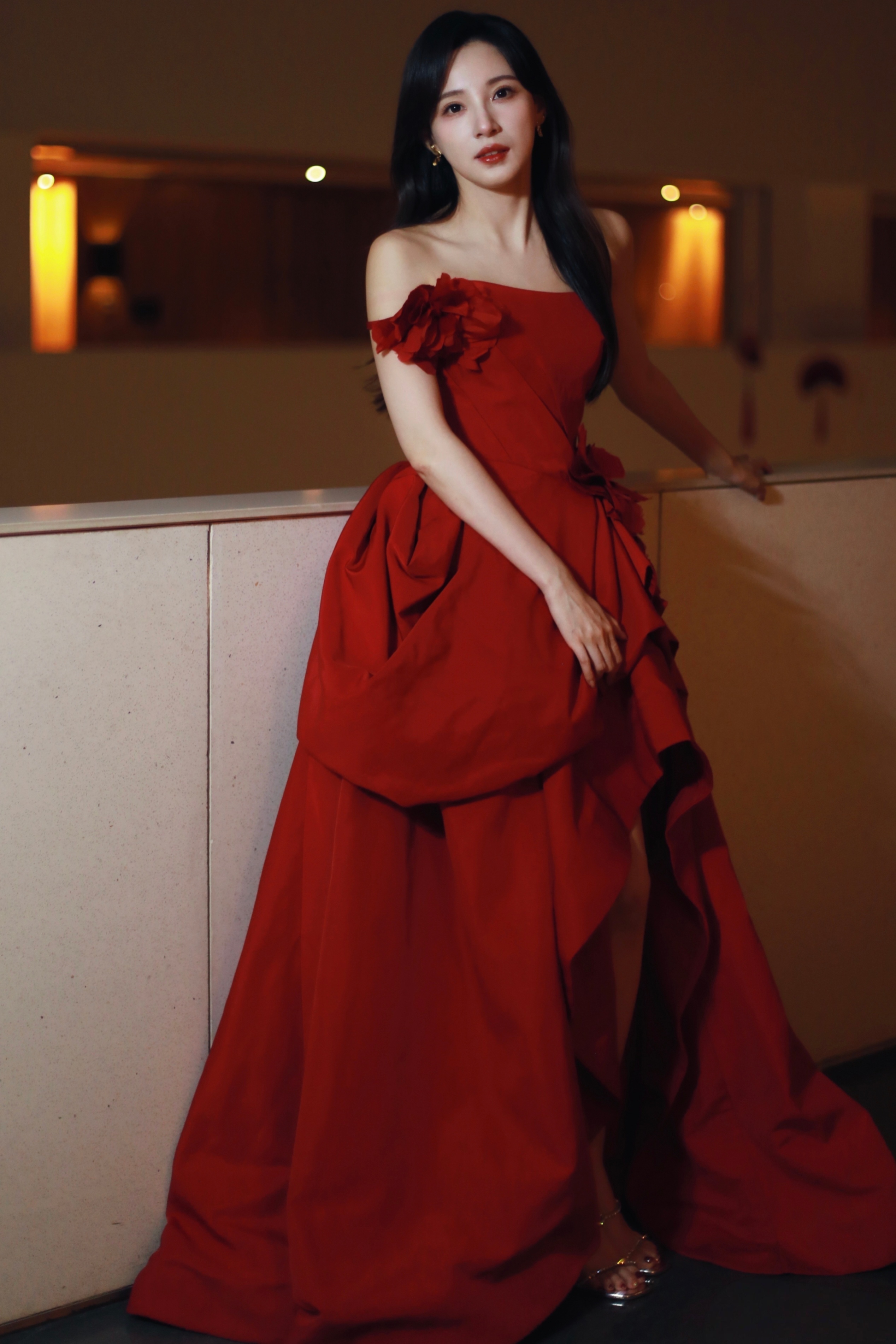 马凡舒:丝绸之路国际电影节妆造型,红裙优雅迷人