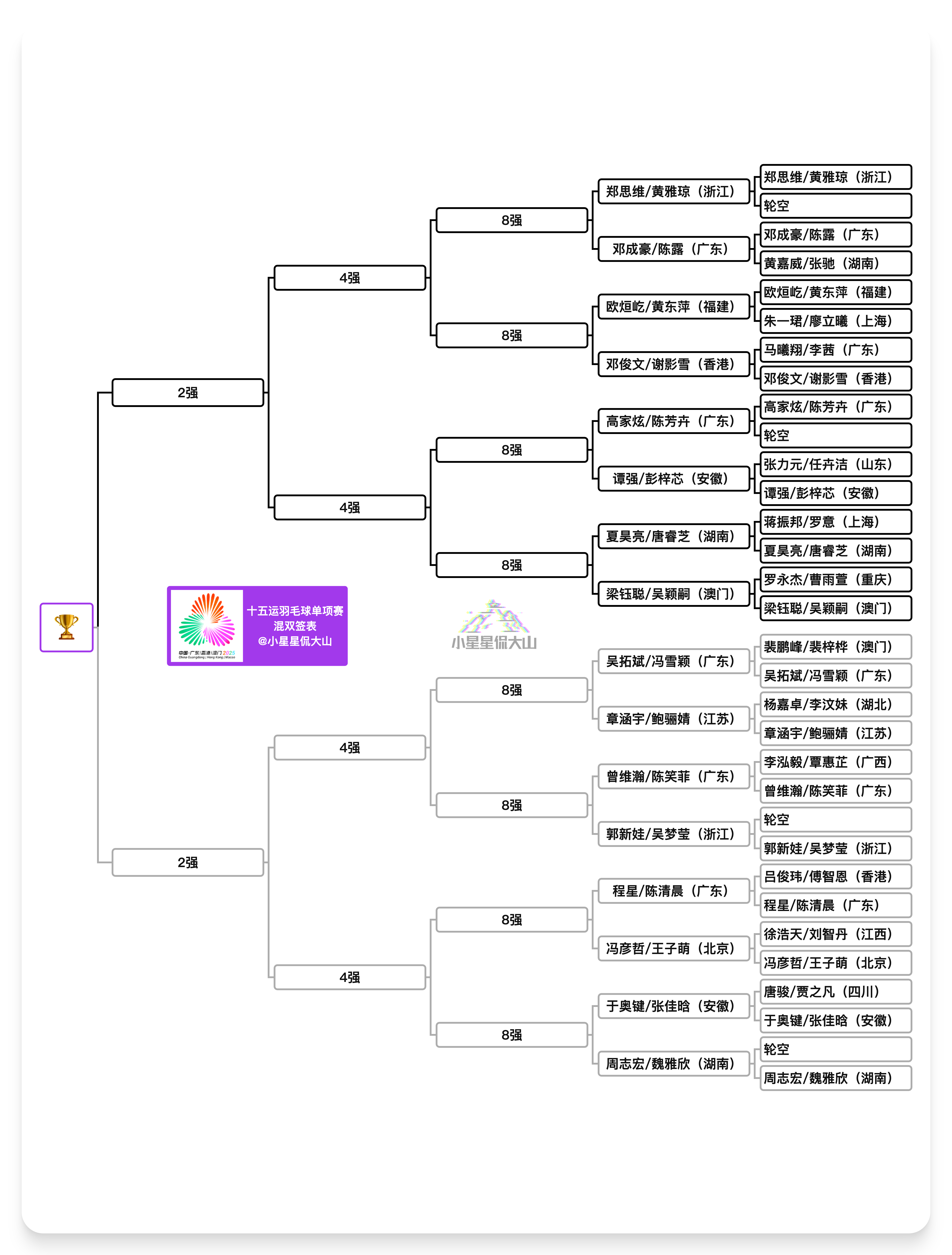 黄嘉威/张驰退赛,邓成豪/陈露晋级下轮下轮:郑思维/黄雅琼(浙江)vs(广东)邓