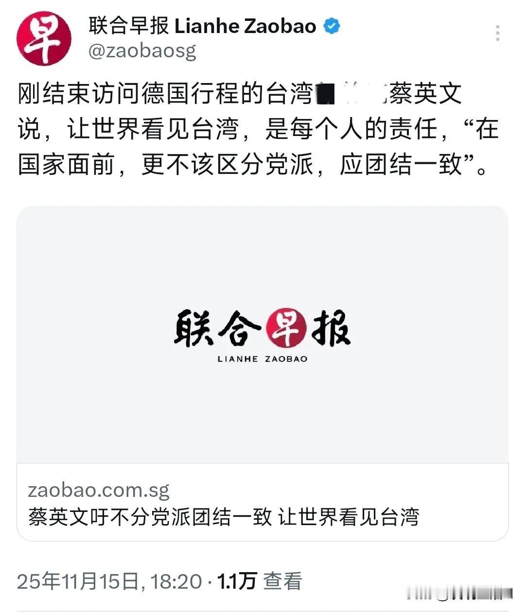 台独分子蔡英文跑到德国说:“让世界看到台湾”。 世界能看到台湾,但不承认台湾。