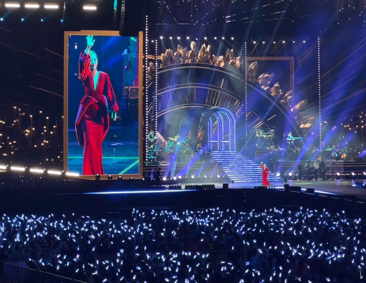 她的红不是转瞬即逝的流量,而是经得起时光考验的实力,上海演唱会上,每首歌都能引发全场跟唱,红裙造型亮眼,互动环节暖心,两场门票秒罄的成绩,见证着她的国民度。