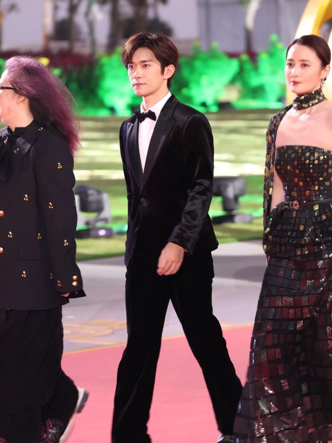 易烊千玺随小小的我亮相金鸡奖闭幕式红毯,好意气风发