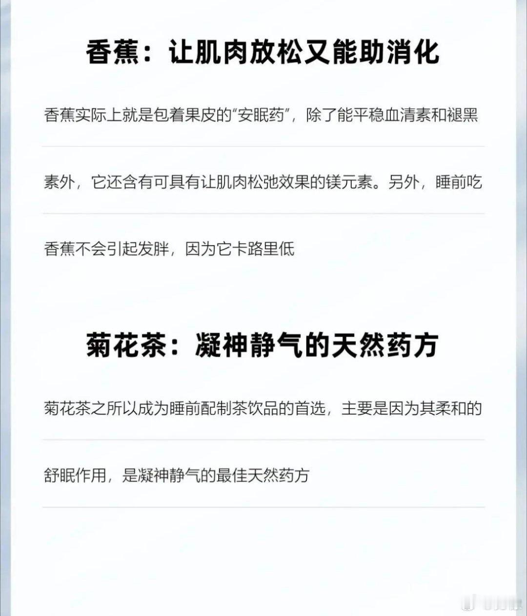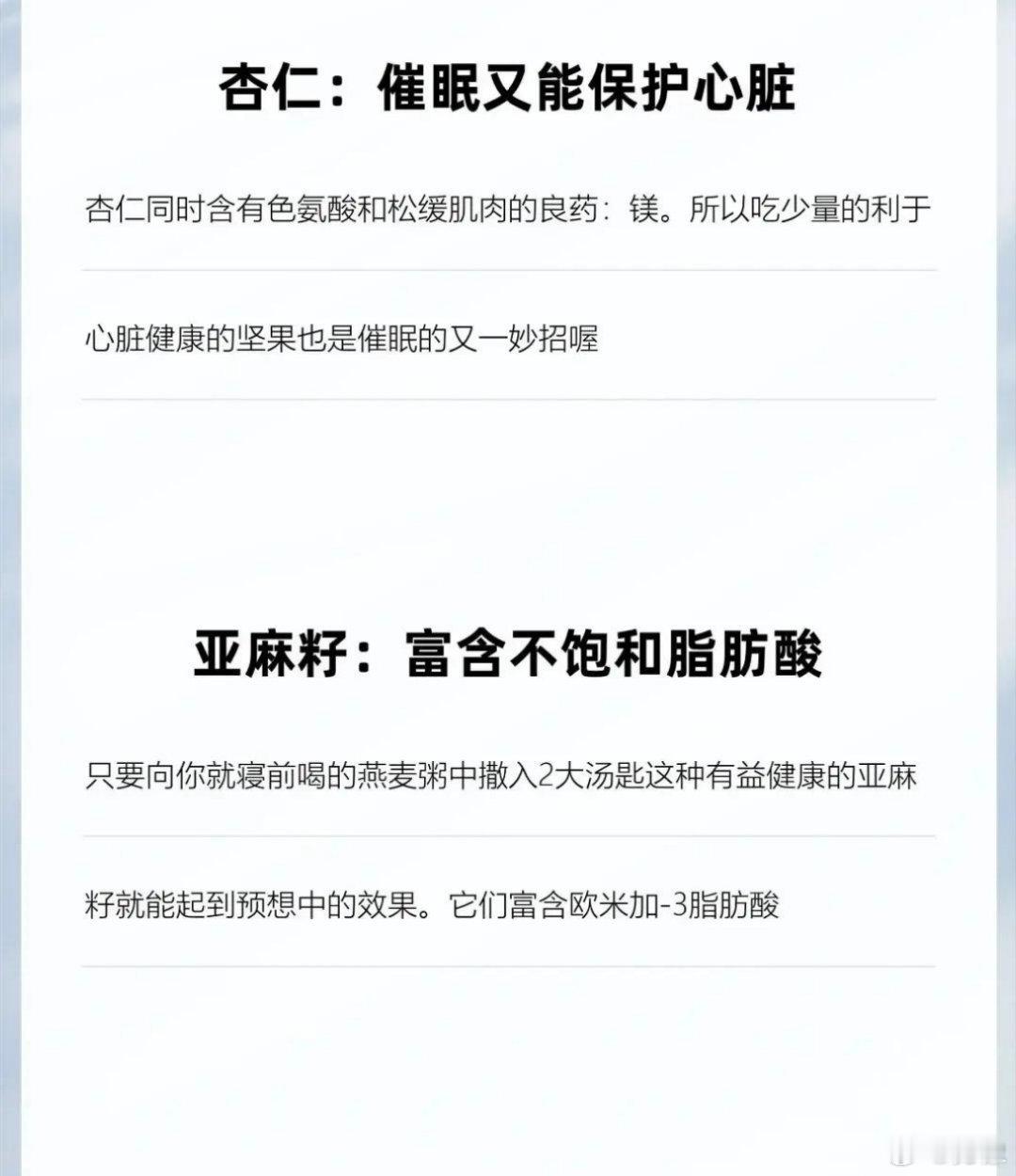 🌙睡前8种食物,瘦身又助眠!🌙想要在睡前吃点什么,又怕发胖?别担心,这里有8种食物,既能让你吃得满足,又不会让你长肉,还能帮助你更好地入睡哦!1️⃣ 🍌香蕉:香蕉含有镁元素,能放松肌肉,促进消化。睡前吃香蕉不仅不会发胖,还能帮助你更好地入睡。2️⃣ 🌼菊花茶:菊花茶具有柔和的舒眠作用,是睡前凝神静气的最佳选择。3️⃣ 🥛温牛奶:牛奶中的色氨酸能发挥镇静功效,睡前喝一杯温牛奶不仅能补充钙质,还能帮助你更好地入睡。4️⃣ 🍯蜂蜜:蜂蜜中的葡萄糖能促使大脑停止产生进食素,帮助你放松入睡。5️⃣ 🥔土豆:土豆能清除阻碍睡眠的酸化合物,将烤土豆捣碎后掺入温牛奶中食用效果更佳。6️⃣ 🍎燕麦片:燕麦片含有丰富的N-乙酰-5-甲氧基色胺和褪黑素,一小碗燕麦片就能起到促进睡眠的效果。7️⃣ 🌰杏仁:杏仁含有色氨酸和镁元素,是催眠和保护心脏的双重佳品。8️⃣ 🌾亚麻籽:亚麻籽富含不饱和脂肪酸,向燕麦粥中撒入2大汤匙亚麻籽,就能起到预想中的效果。🌙试试这些食物吧,让你的睡前时光更加健康和舒适!