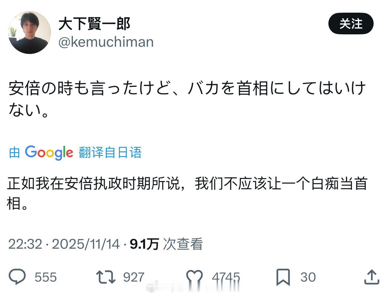 日本人说安倍和高市早苗是白痴,不应该让白痴当首相!