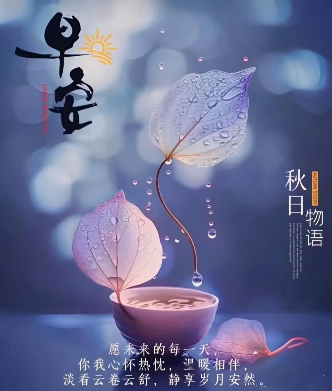 美麗靜好的清晨, 送上真誠的祝福, 祝願你開心無憂, 快樂平安人吉祥。 早上好!