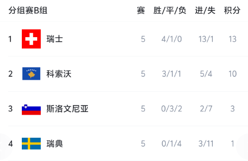 垫底的瑞典已经通过欧国联途径锁定了一个附加赛的参赛席位,排名第三的斯洛文尼亚则已经彻底无缘美加墨世界杯。