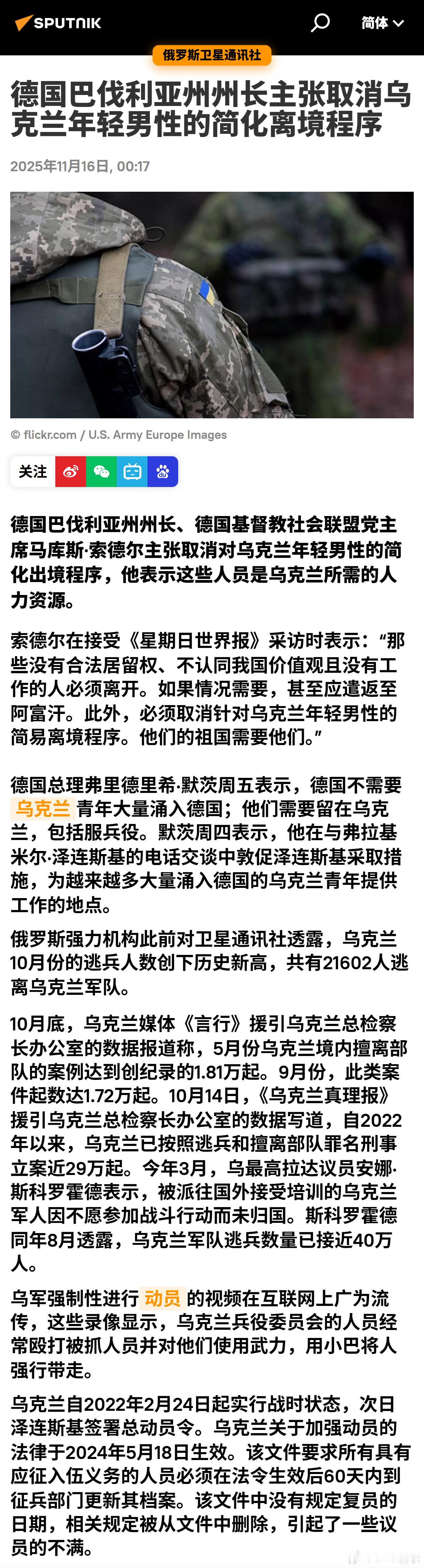 德国巴伐利亚州州长主张取消乌克兰年轻男性的简化离境程序