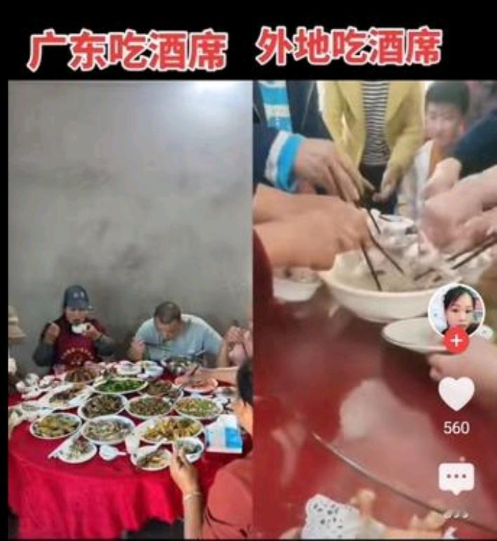 广东吃席和外地吃席,真的是两种截然不同的风格。 广东人慢条斯理,细细品味。甚至在开席时谁也不肯先动筷,总是长者先开口,众人才开始。整个过程,总是谦让,从不见有人抢箸。而且大家边吃边聊,气氛十分和谐。 而某些外地人吃席则是全然不同的风尚,显然就是手快有,手慢无。活脱脱就是一个奋不顾身,冲锋陷阵式的抢。