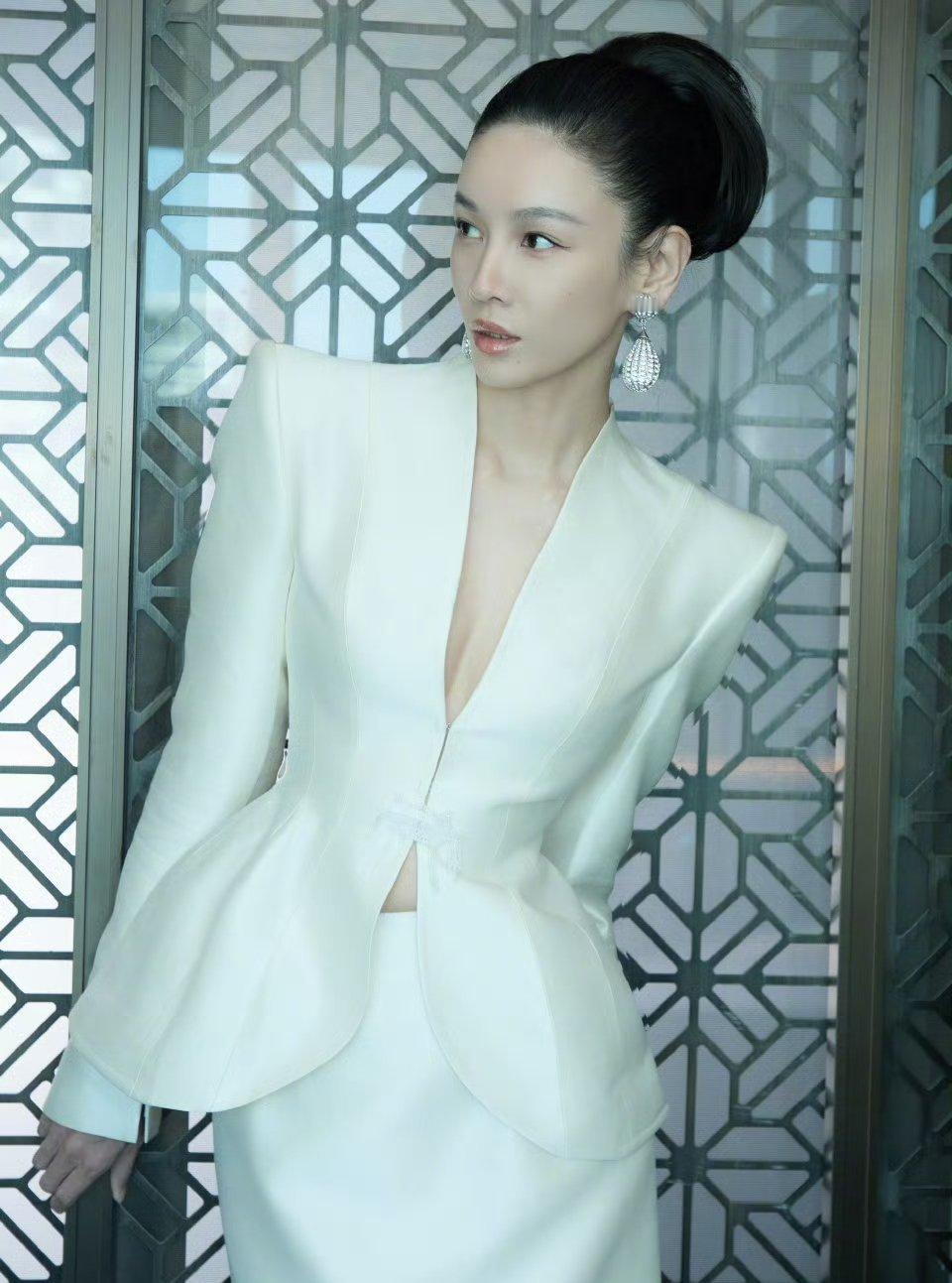 刘亦菲把死亡玫粉穿出了定制款的感觉,这种颜色普通人穿上分分钟黑三度,她居然能穿出