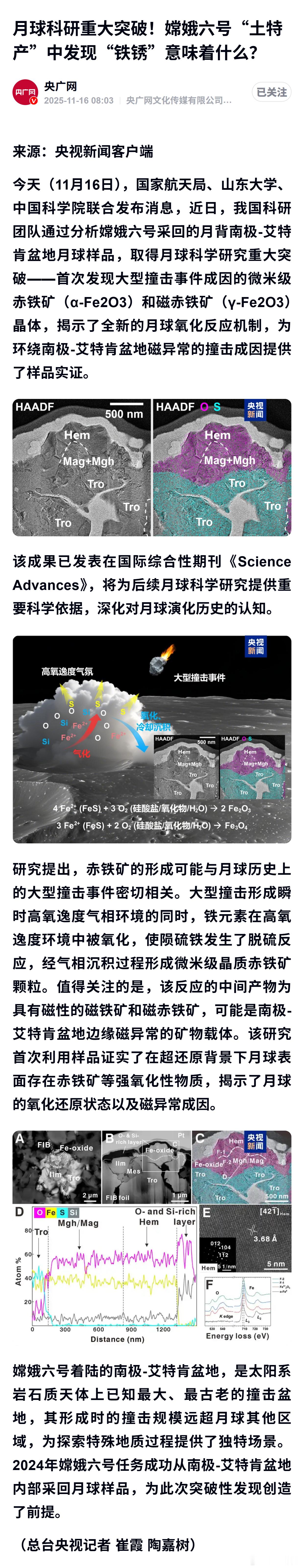 月球科研重大突破!嫦娥六号“土特产”中发现“铁锈”意味着什么?