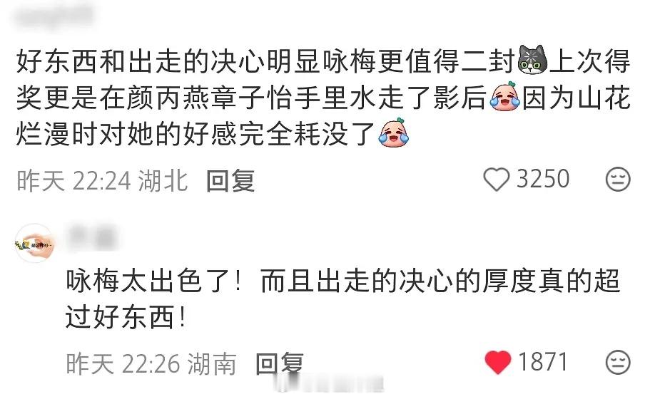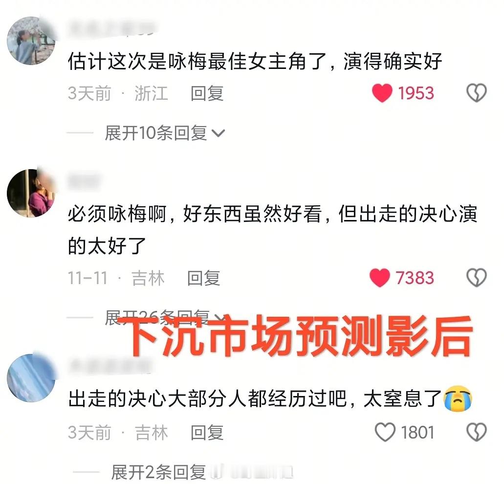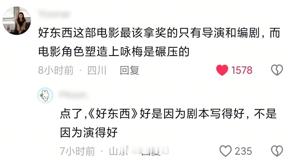 几乎所有观众都认为,宋佳不能拿影后。好东西该拿奖的是编导,该拿影后的是咏梅。。。