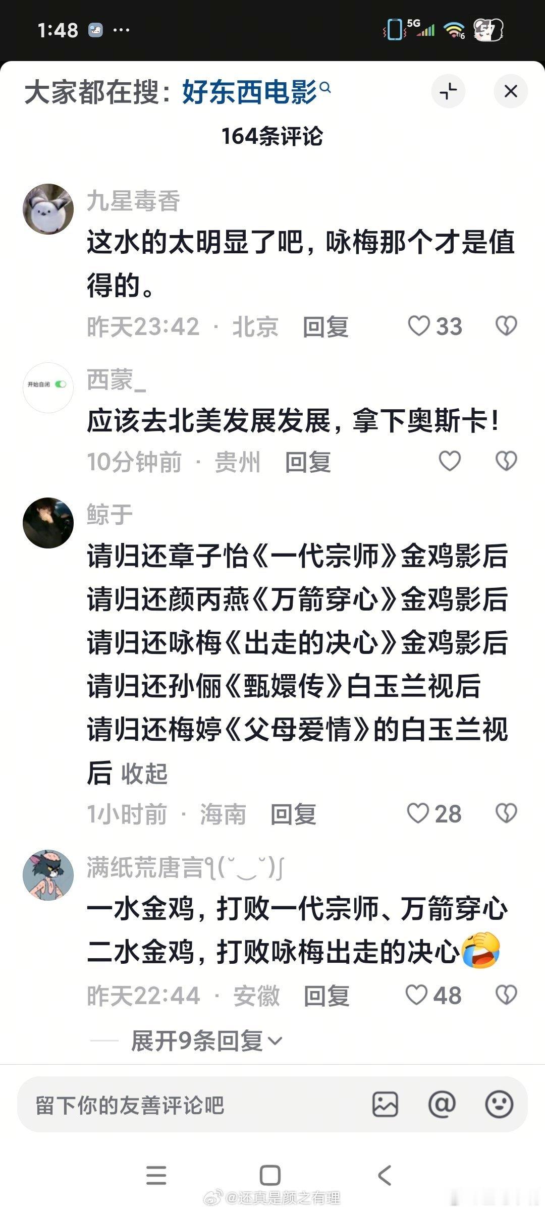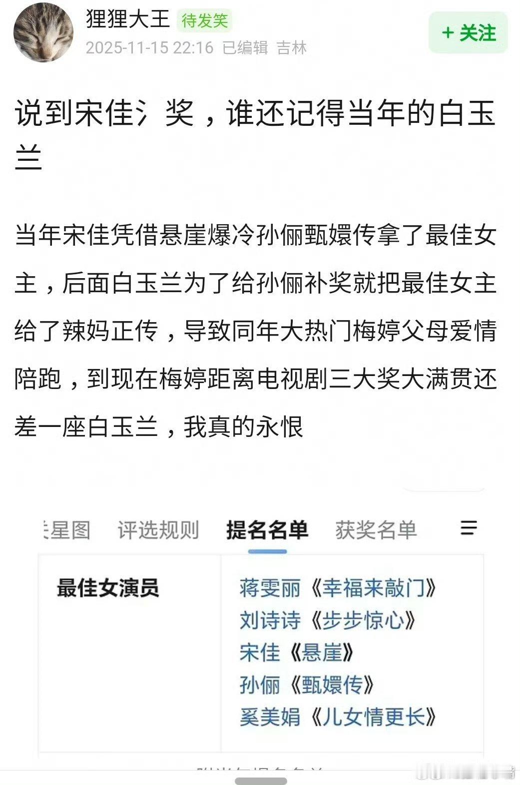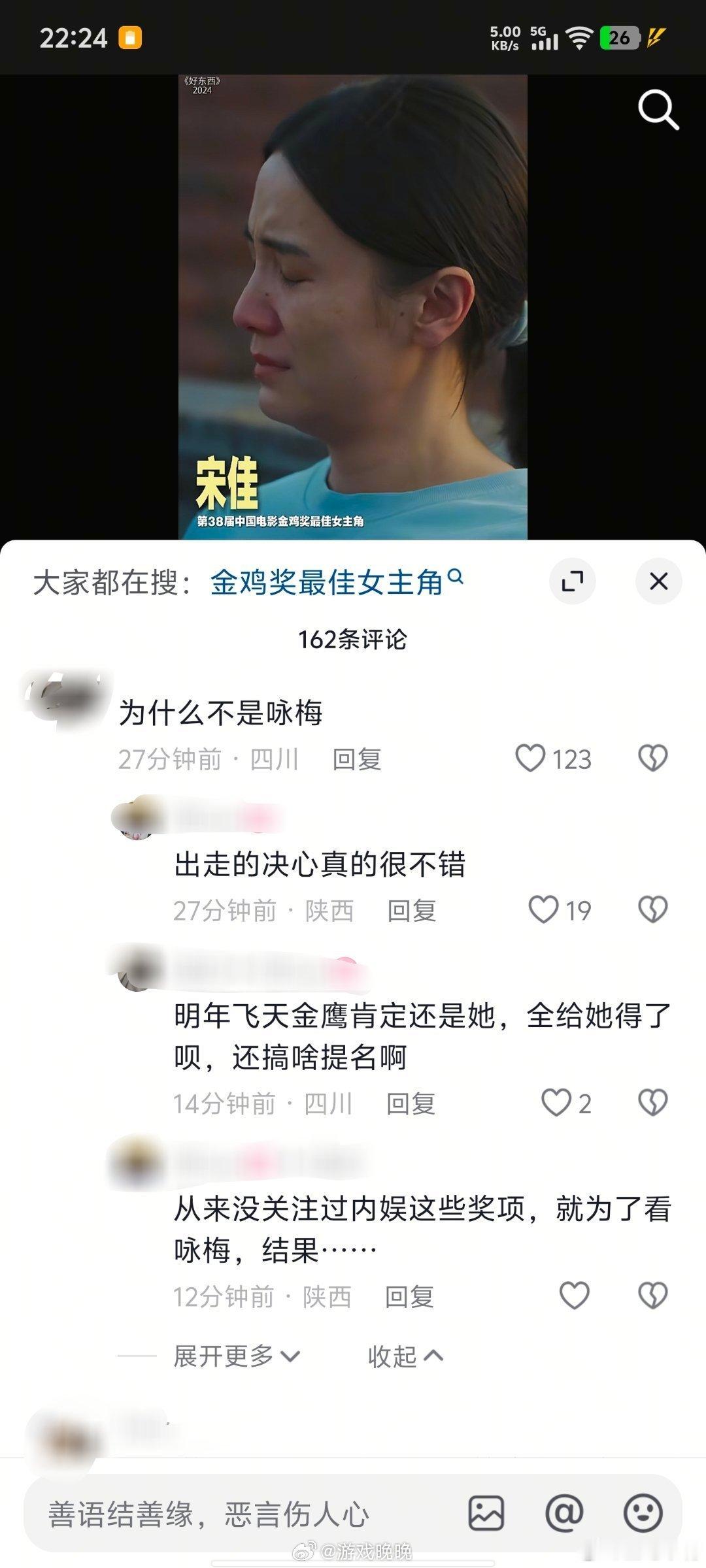 这次宋佳得金鸡奖影后大多数网友不满意!直呼水奖!普遍认为咏梅才是金鸡奖最佳女主角!