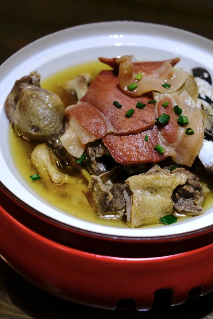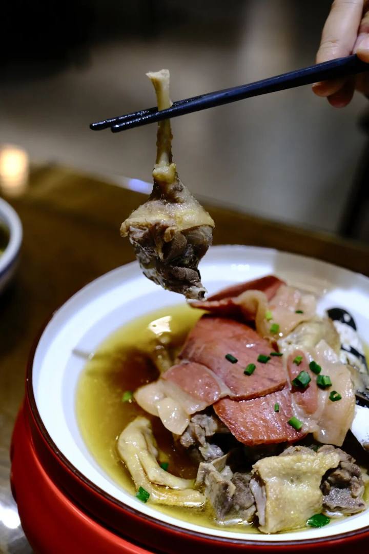 养殖野鸭水很深,他家这个鸭子,吃过知道,好的,鸭肉有香味。火腿把鲜味蒸进鸭汤中,再沁入鸭肉鸭骨,鲜得隔壁鸡煲急眼。