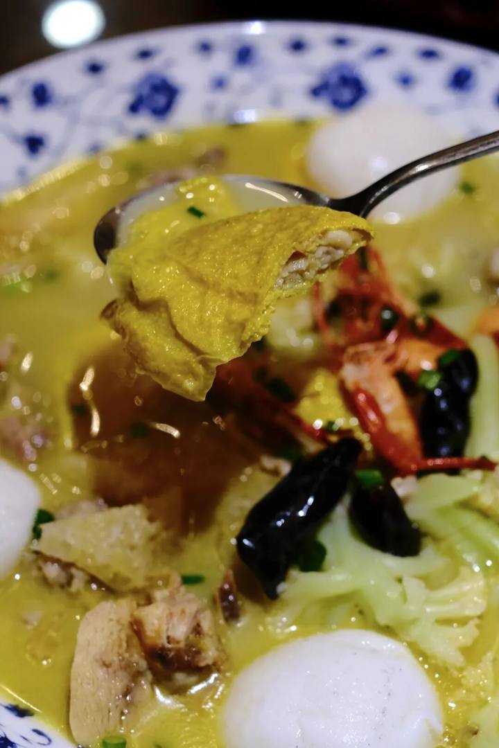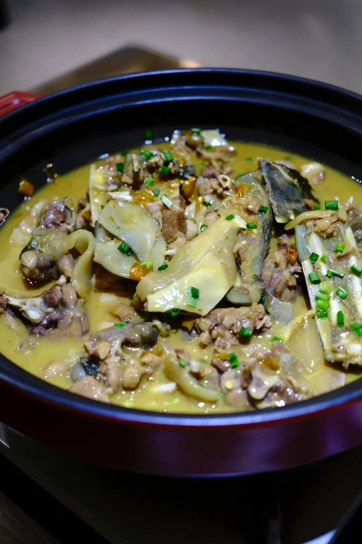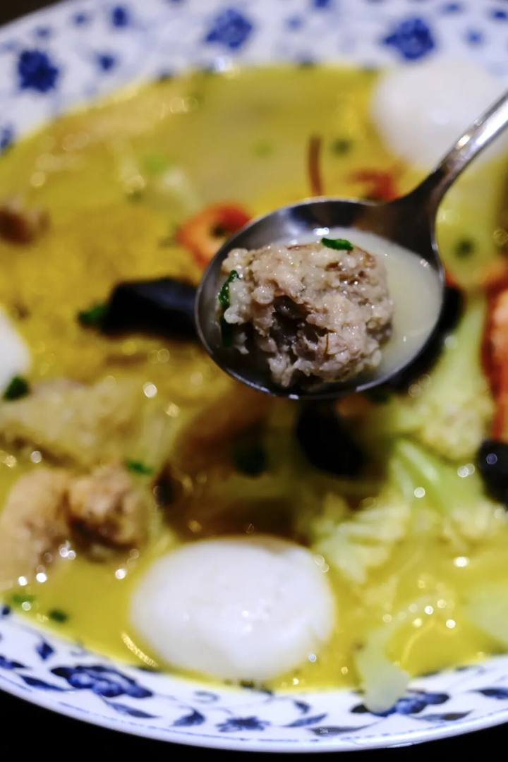三鲜汤是一半高汤,店里专门有一大锅汤吊着,以筒骨、以鸡架,从早吊到晚,可以入菜。