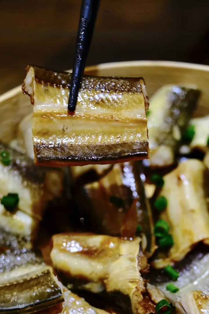 沙鳗在上虞宁波一带是很常见的,单独做个菜就是芹菜炒沙鳗干。带鱼就是油带,腌得咸淡刚好。上虞靠近慈溪,口味偏宁波化。