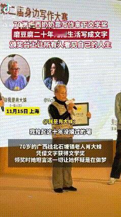 打脸了!广西,一位70岁的老奶奶拾起了十年没有摸过的笔,画自己艰辛的童年,写求学路上的心酸,写二十年磨豆腐的经历,起初老奶奶还不自信,想着十几年没有摸过笔,字都写不起,连小学生都不如,没想到自己朴实的文字得到了大家的喜爱,最终凭借文字获得文学奖。 老奶奶的写作打脸了无数作者学者,一个十年没有摸过笔的人,最终写出来的东西不仅得到了读者的喜爱,而且还因此获得了文学奖,反观有些整天专研的人可能还没有这样的成就,简直就是无形中的打脸。 不过话说回来,老奶奶的写作之所以能获得读者喜爱,不是因为有华丽的词藻和多么丰富多彩的内容,最大原因应该就是写作源自于生活,写出了生活中的心酸和无奈,因此让大家产生了共鸣。 这件事也是告诉了大家,作品想要吸引读者,内容不仅要真实,而且还要源自于生活这样才会引起大家的共鸣。