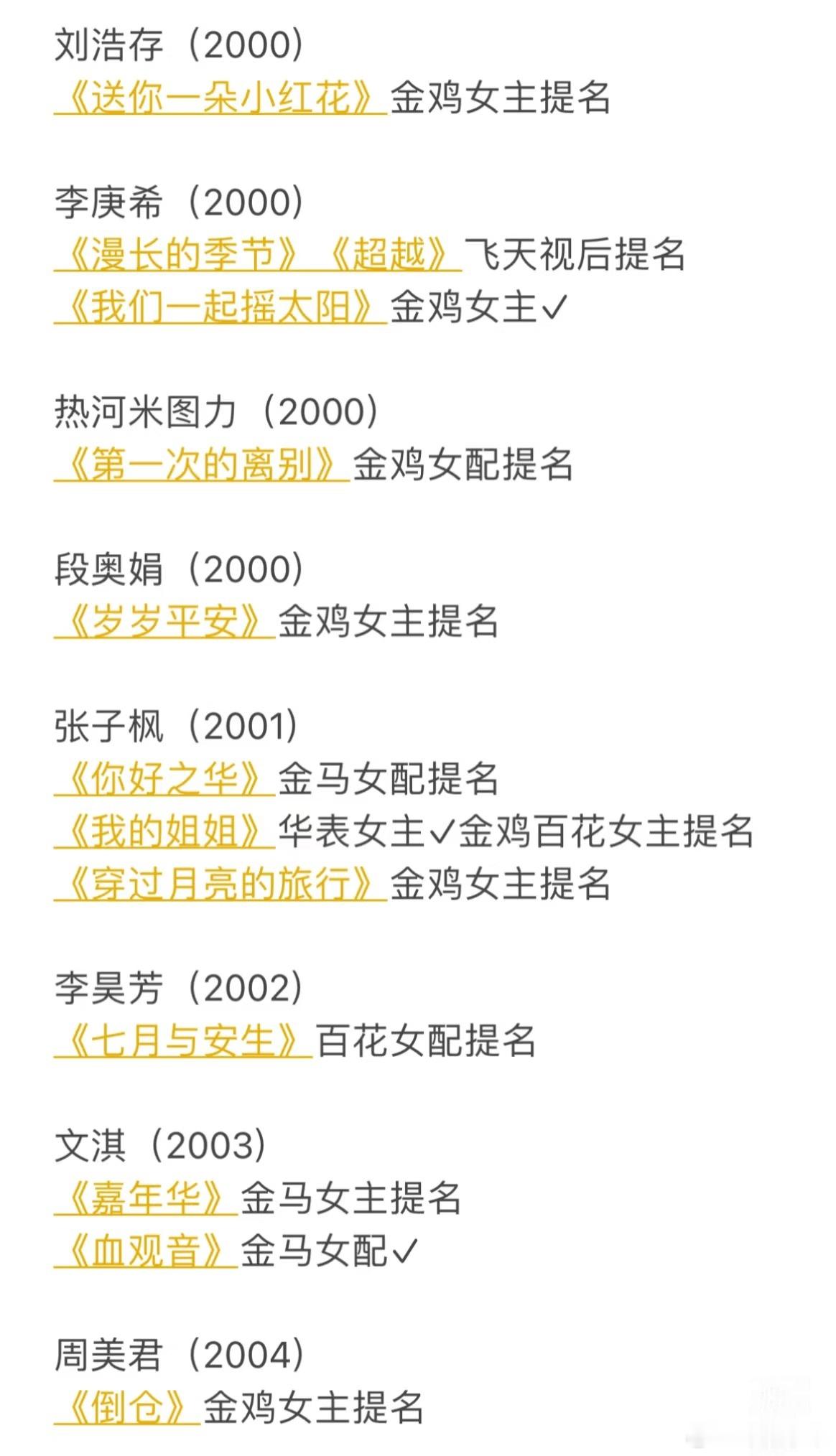 从提名频次来看,电影圈直接越过了85.90.95,90只有冬雨一骑绝尘,反倒是像个意外。