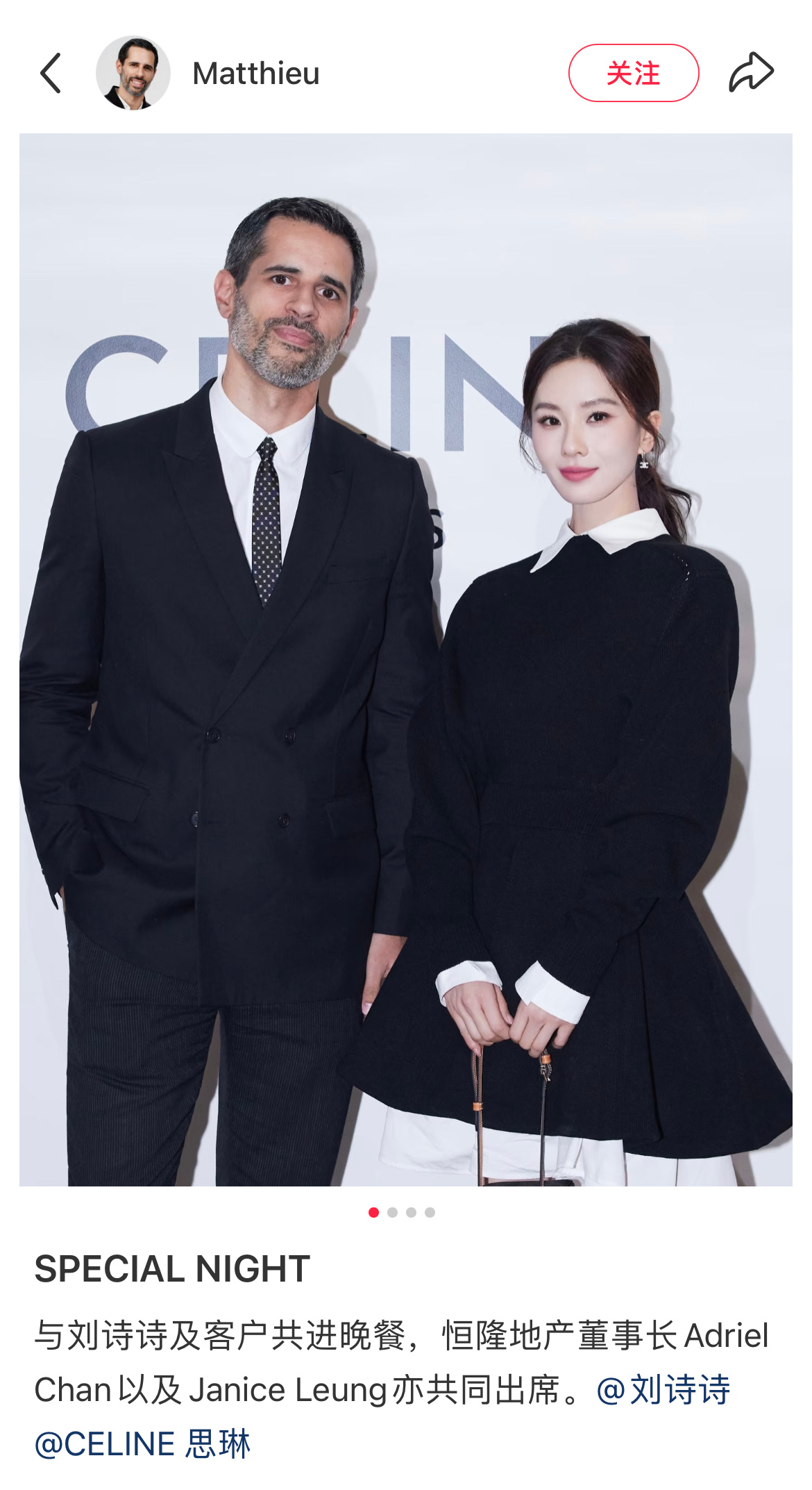 CELINE大中华区总经理Matthieu🍠发文,和刘诗诗合影