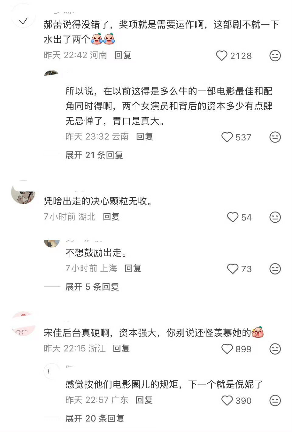 其实我觉得宋佳和钟楚曦的奖项都名不副实宋佳远远不如咏梅,王铁梅是宋佳舒适区、演法