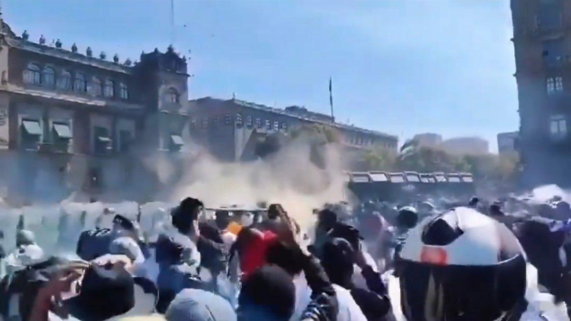 墨西哥国家宫外的反腐败,抗议者突破警戒线,目前正与防暴警察发生冲突。