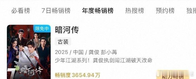 龚俊《暗河传》优酷年榜升至第七位!!🎉
