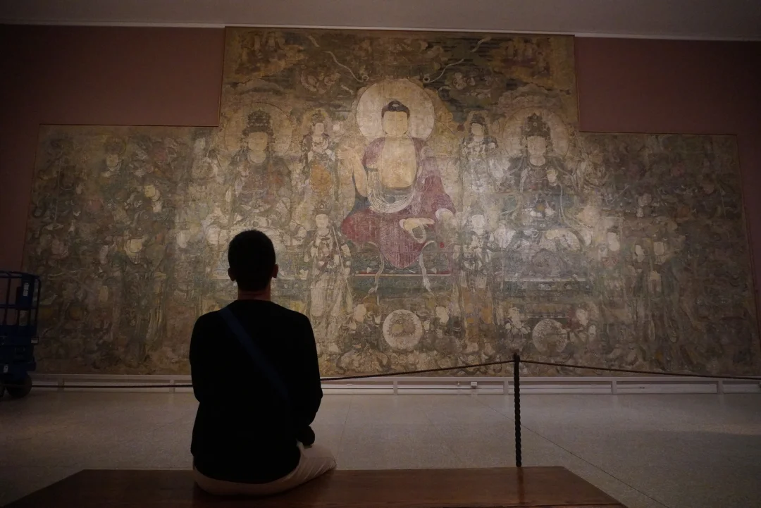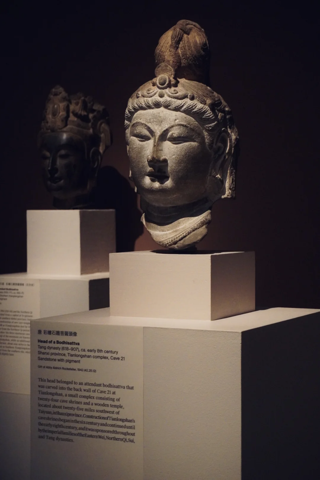每次来纽约大都会博物馆,药师经变图前的长条凳上都坐满了国人,大家安静的凝视壁画,不知道在想些什么。 有种观点认为,这批文物流失海外的结局是最优的,否则,我们谁也无法看到这幅壁画和这些石像了。 但望着展台上那些被砍下的佛首,我却越看越不是滋味。