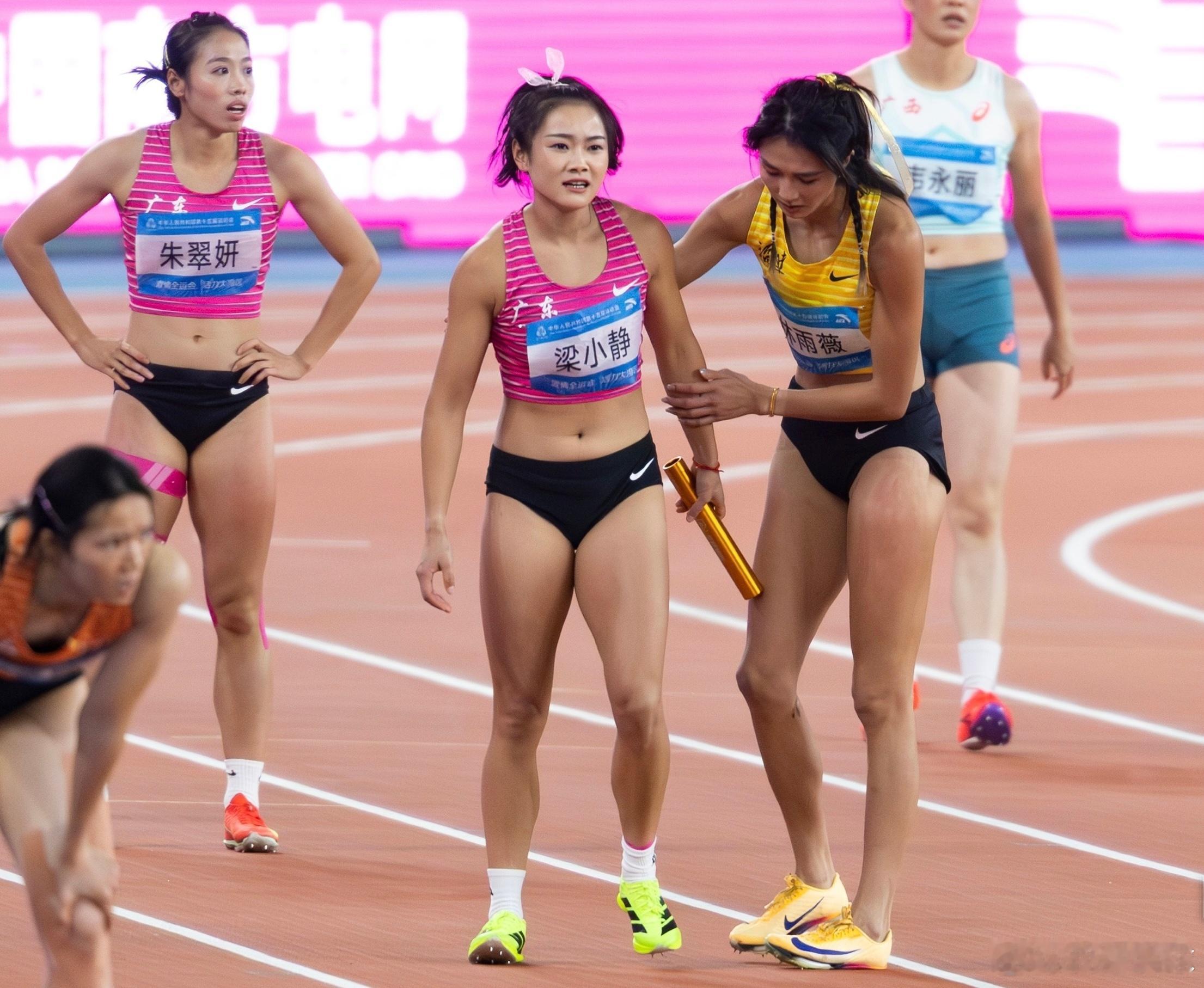 太遗憾了,广东队短跑名将梁小静因伤退赛,她本来非常有希望冲击100米金牌的,但在昨晚接力比赛中意外摔倒受伤了,真的可惜,今年状态大好又是在家门口作战这样看来小孩姐陈妤颉很有可能包揽此次100米和200米双冠了